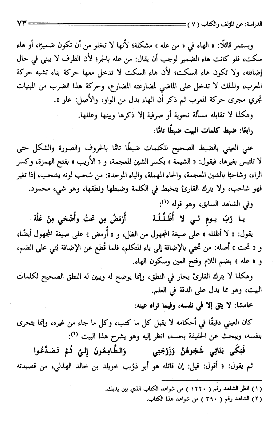 وهكذا لا يترك القارئ يحار في النطق، وإنما يوضح له ويبين له النطق الصَّحيح لكلمات البيت، وهو ممَّا يدل على الدقة في العلم.