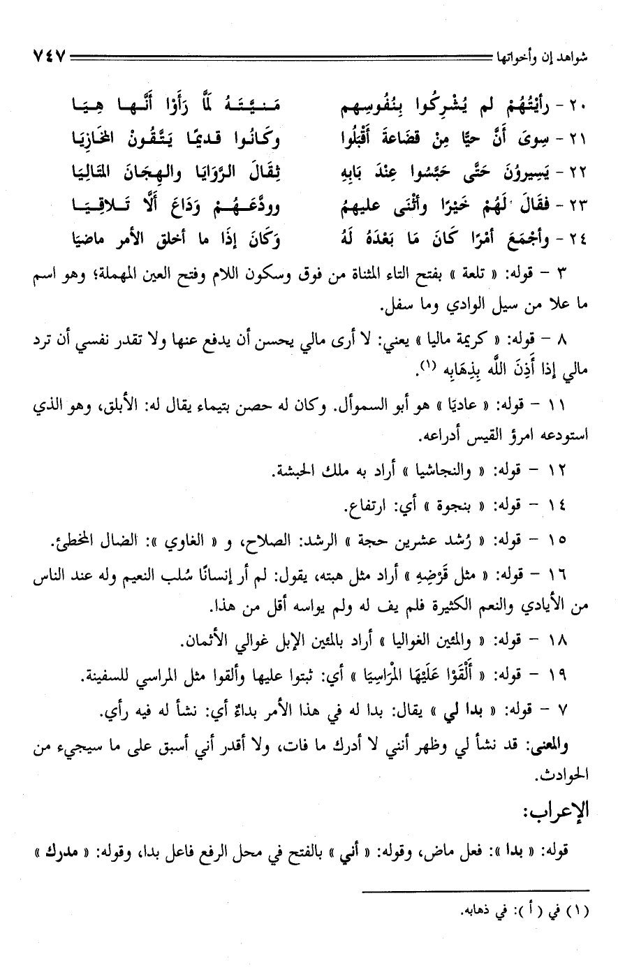 20 - رأيْتُهُمْ لم يُشْرِكُوا بِنُفُوسِهم ... مَنيَّتَهُ لمَّا رَأَوْا أنَّها هِيَا
