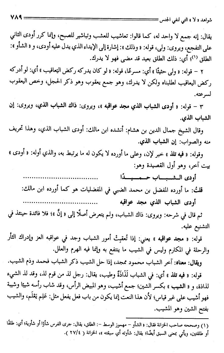 وقال الشيخ جمال الدين بن هشام: أنشده ابن مالك: أودى الشباب الذي، وهذا تحريف منه والصواب: إن الشباب الذي.