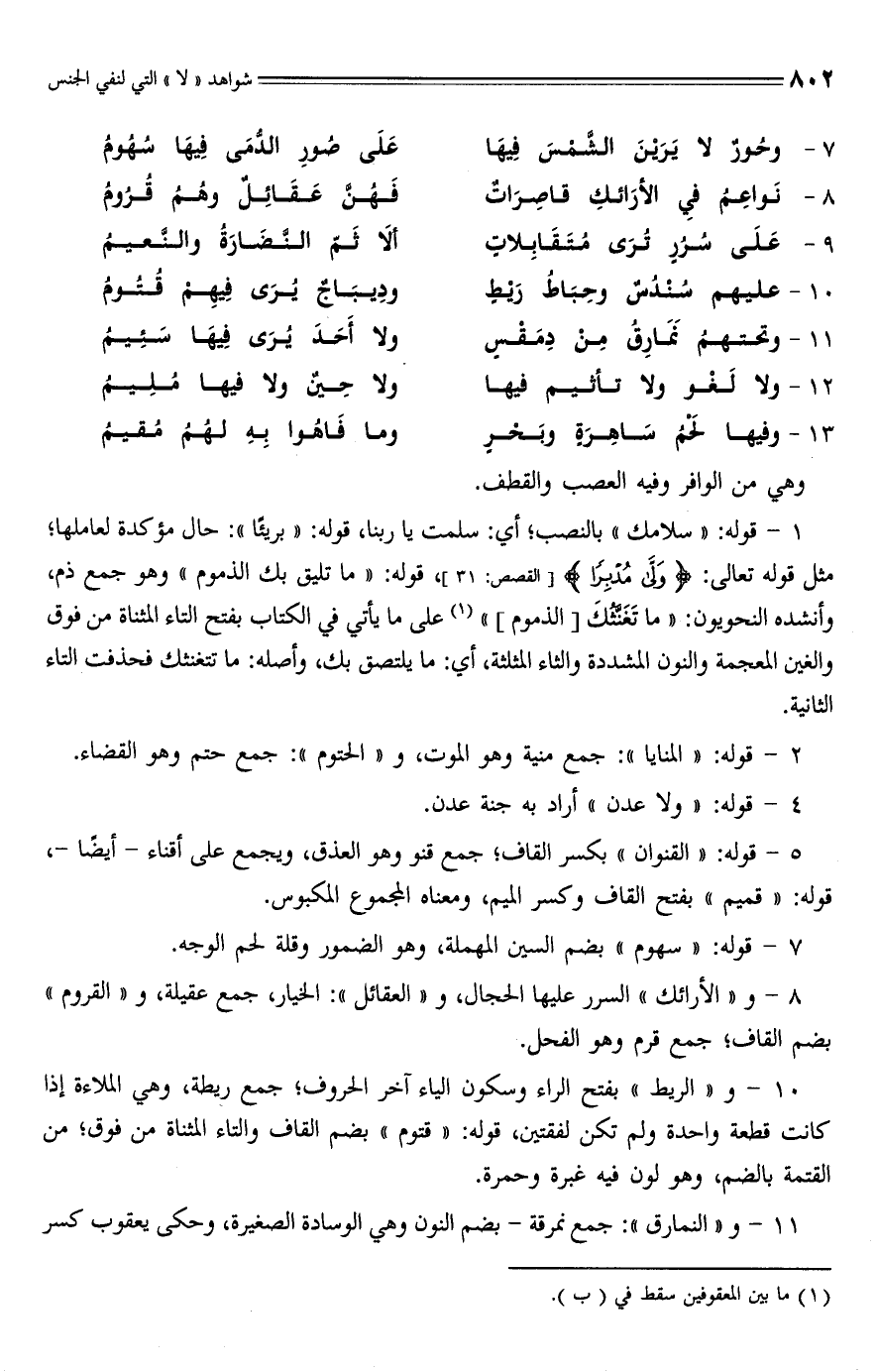 8 - و "الأرائك" السرر عليها الحجال، و "العقائل": الخيار، جمع عقيلة، و "القروم" بضم القاف؛ جمع قرم وهو الفحل.