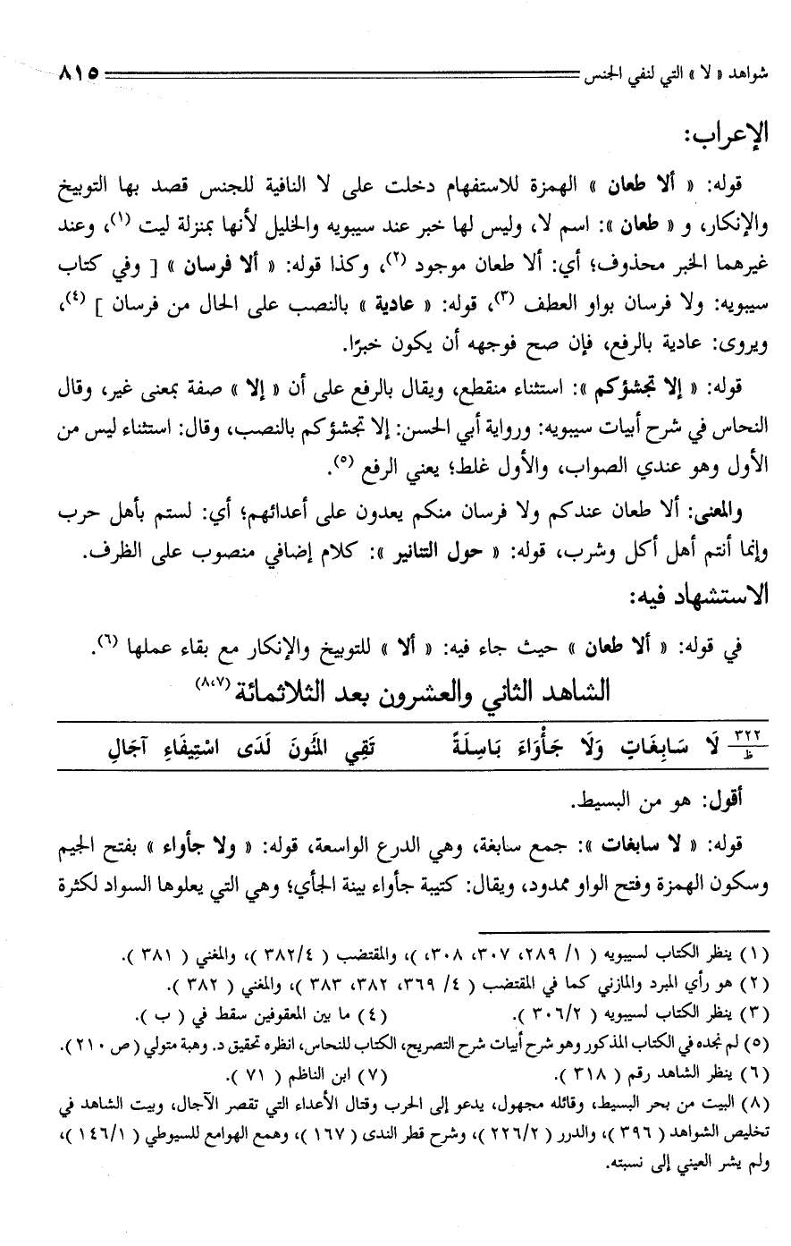 (¬5) لم نجده في الكتاب المذكور وهو شرح أبيات شرح التصريح، الكتاب للنحاس، انظره تحقيق د. وهبة متولي (ص 210).