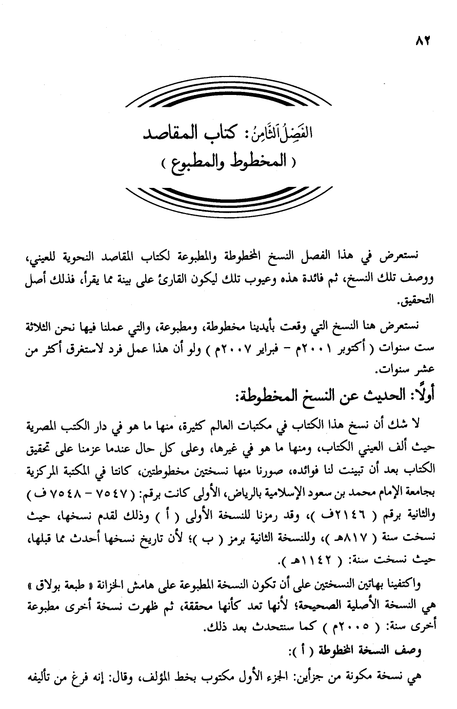 الفصل الثامن: كتاب المقاصد (المخطوط والمطبوع)