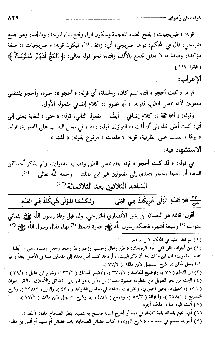 (¬4) البيت من بحر الطويل من مقطوعة صغيرة للنعمان بن بشير يدعو فيها إلى الفضائل والأخلاق الحالية، الديوان (159)، تحقيق د. يحيى الجبوري، وانظر بيت الشاهد في تخليص الشواهد (431)، والدرر (2/ 238)، وشرح التصريح (1/ 248)، والخزانة (3/ 57)، والهمع (1/ 148)، وشرح التسهيل لابن مالك (2/ 77).
