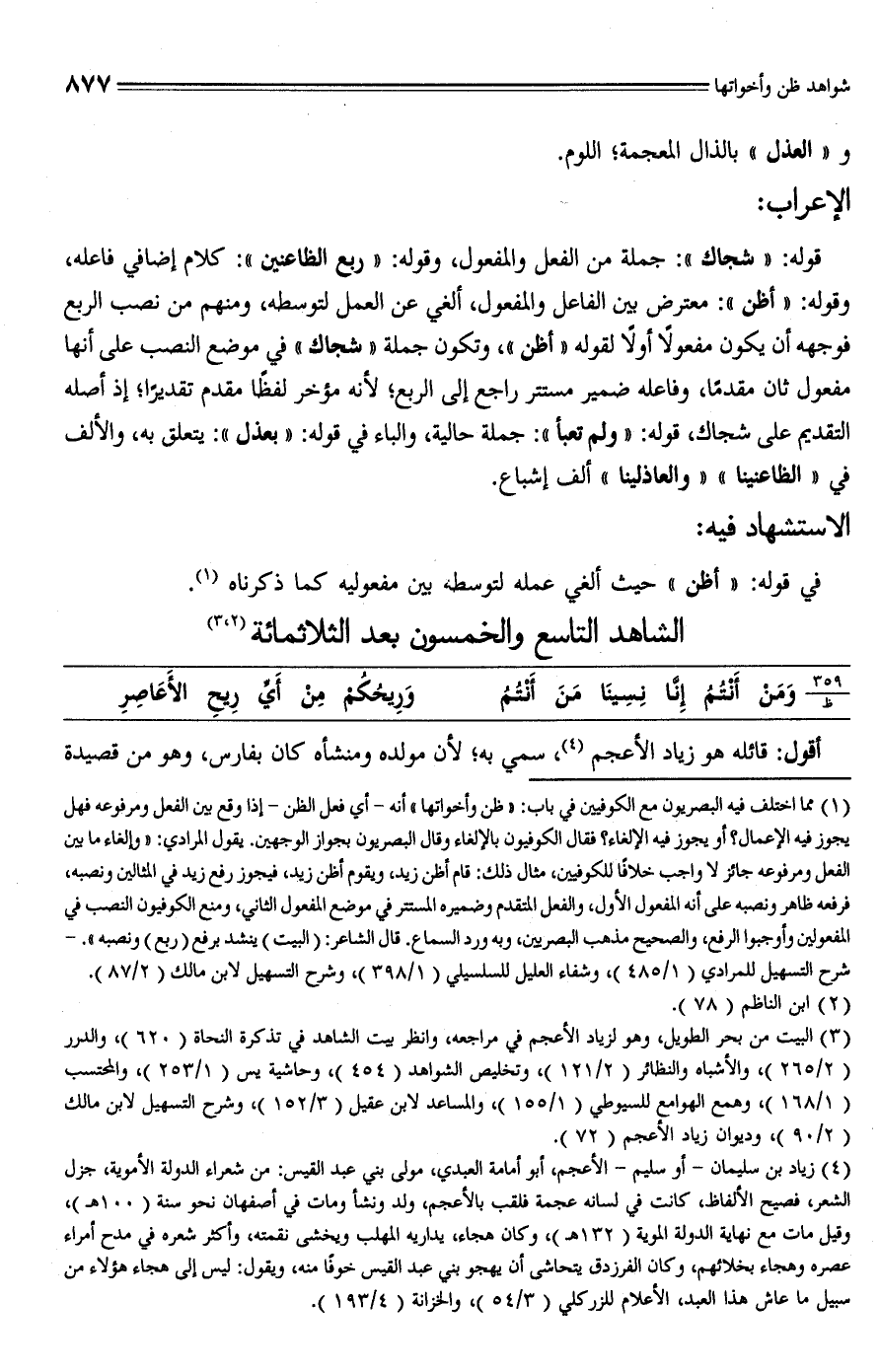 (¬3) البيت من بحر الطويل، وهو لزياد الأعجم في مراجعه، وانظر بيت الشاهد في تذكرة النحاة (620)، والدرر (2/ 265)، والأشباه والنظائر (2/ 121)، وتخليص الشواهد (454)، وحاشية يس (1/ 253)، والمحتسب (1/ 168)، وهمع الهوامع للسيوطي (1/ 155)، والمساعد لابن عقيل (3/ 152)، وشرح التسهيل لابن مالك (2/ 90)، وديوان زياد الأعجم (72).