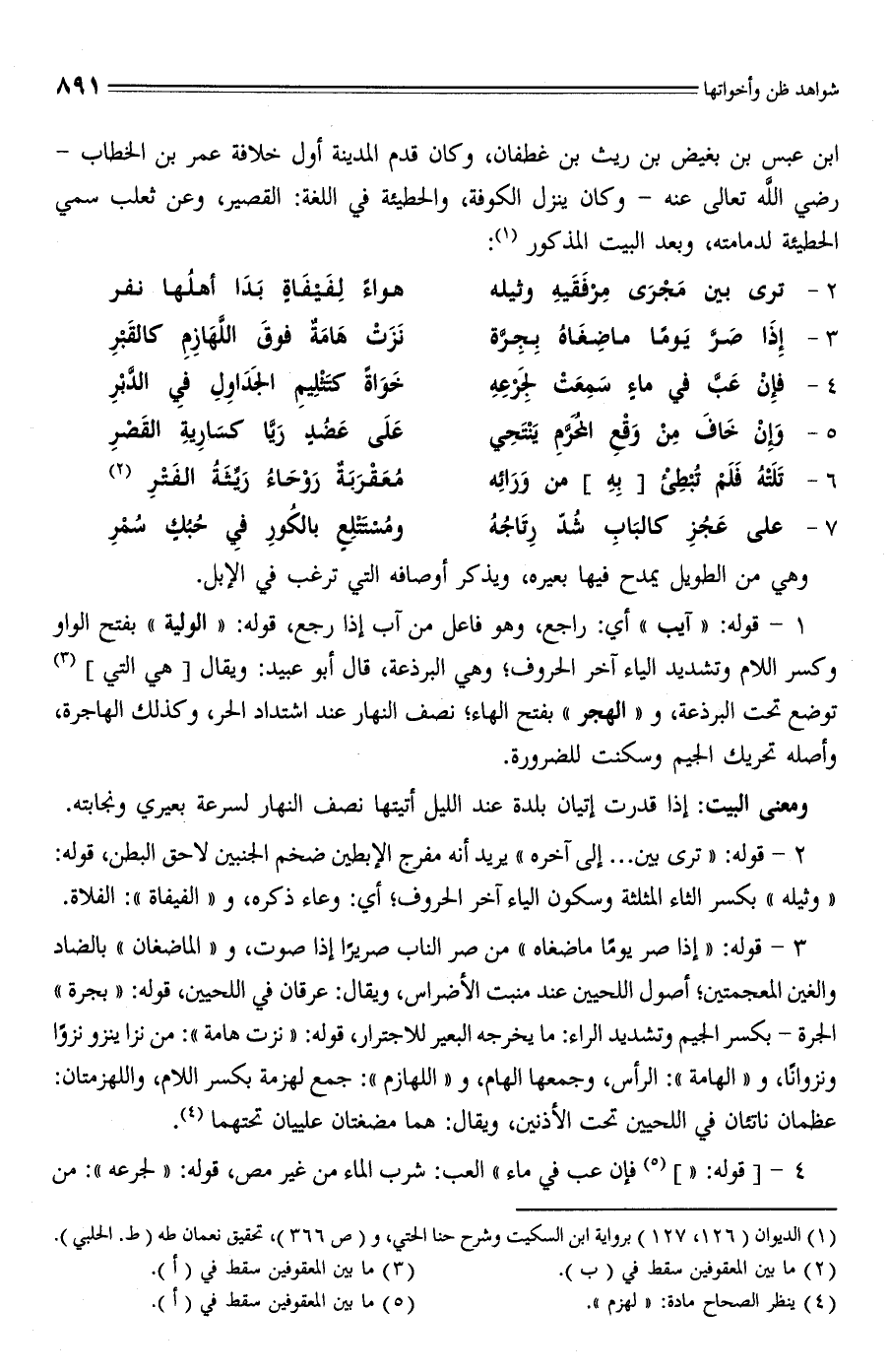 (¬1) الديوان (126، 127) برواية ابن السكيت وشرح حنا الحتي، و (ص 366)، تحقيق نعمان طه (ط. الحلبي).
