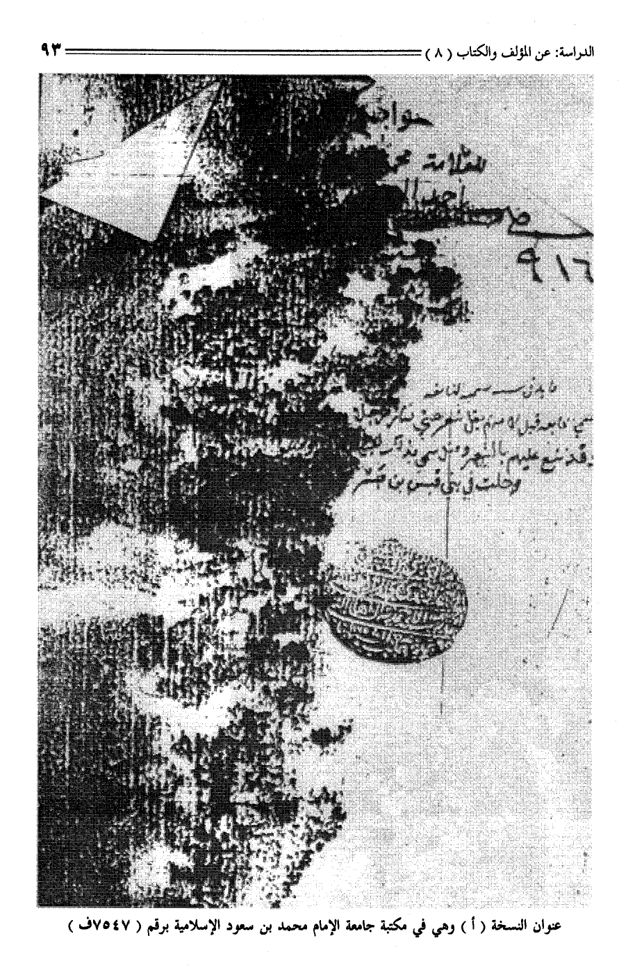 عنوان النسخة (أ) وهي في مكتبة جامعة الإمام محمد بن سعود الإسلامية برقم (7547 ف)