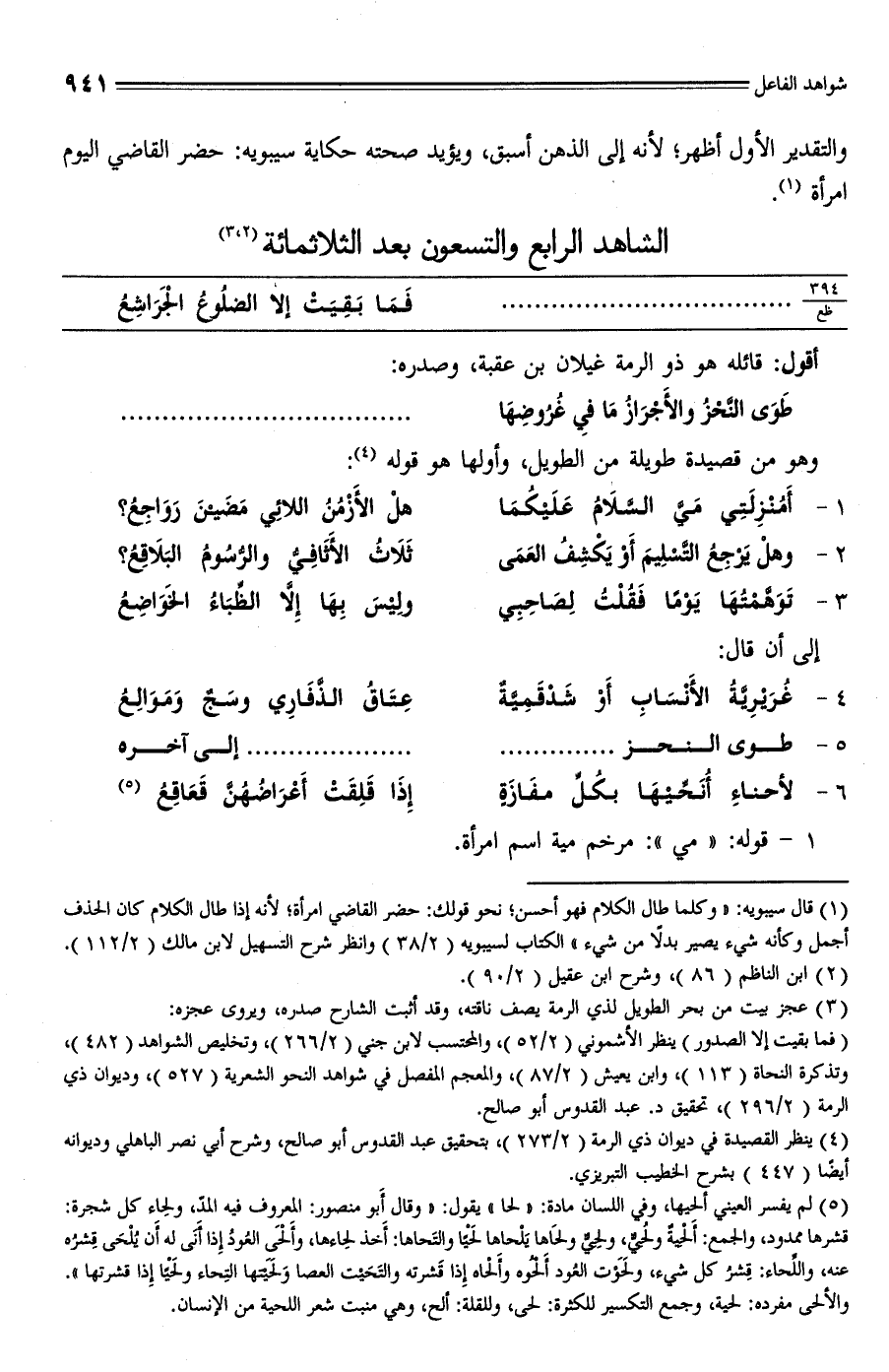 (¬4) ينظر القصيدة في ديوان ذي الرمة (2/ 273)، بتحقيق عبد القدوس أبو صالح، وشرح أبي نصر الباهلي وديوانه أيضًا (447) بشرح الخطيب التبريزي.