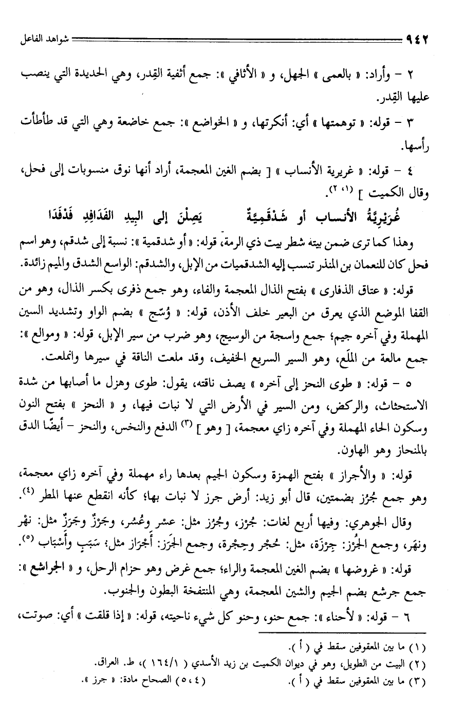 4 - قوله: "غريرية الأنساب" [بضم الغين المعجمة، أراد أنها نوق منسوبات إلى فحل، وقال الكميت] (¬1)، (¬2).