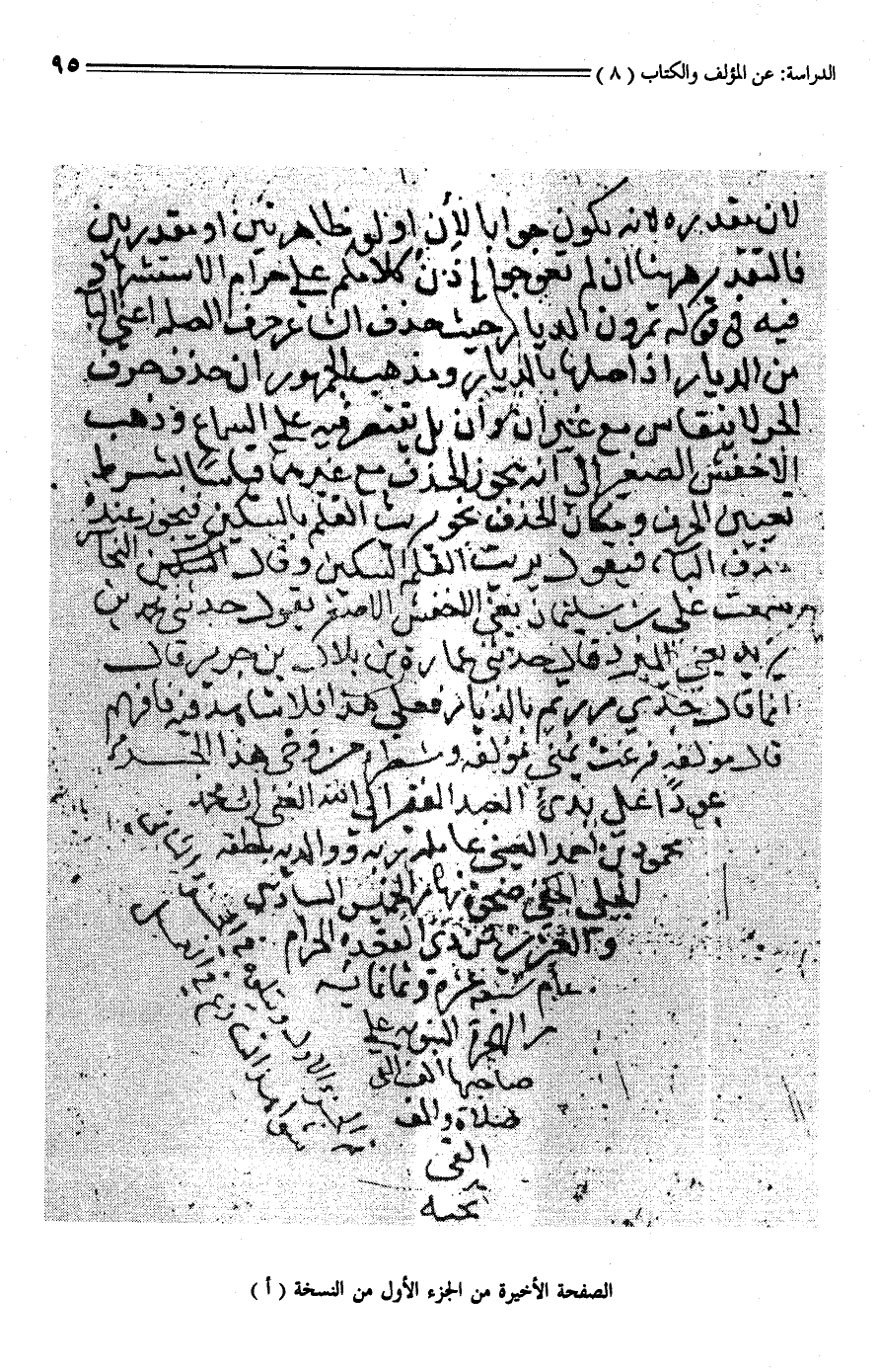 الصفحة الأخيرة من الجزء الأول من النسخة (أ)