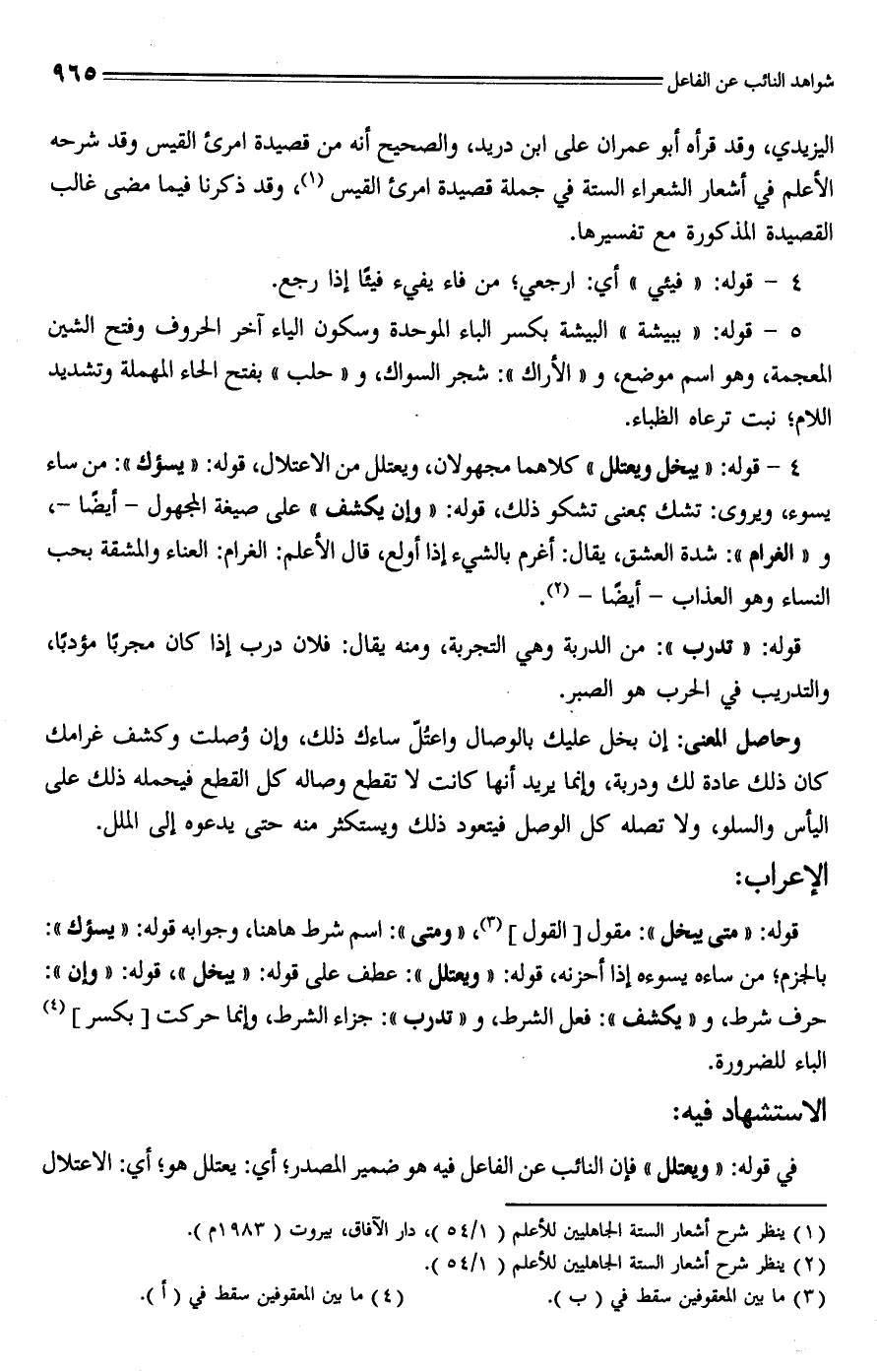 (¬1) ينظر شرح أشعار الستة الجاهليين للأعلم (1/ 54)، دار الآفاق، بيروت (1983 م).