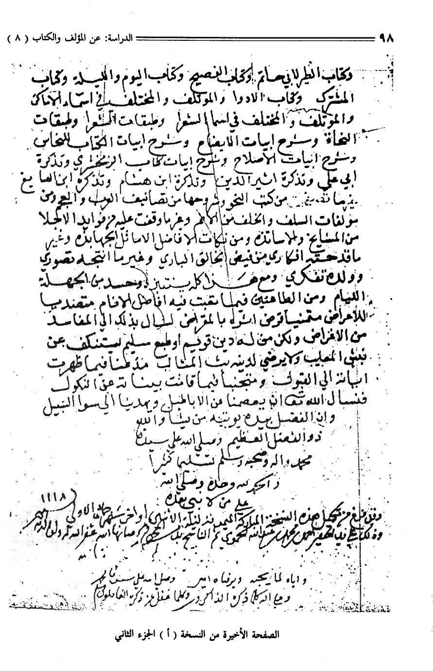 الصفحة الأخيرة من النسخة (أ) الجزء الثَّاني