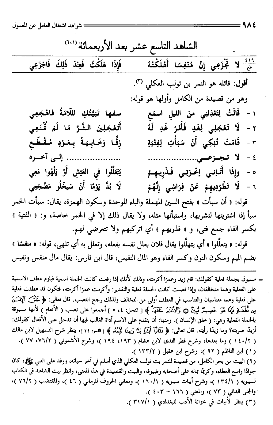 الشاهد التاسع عشر بعد الأربعمائة (¬1)، (¬2)