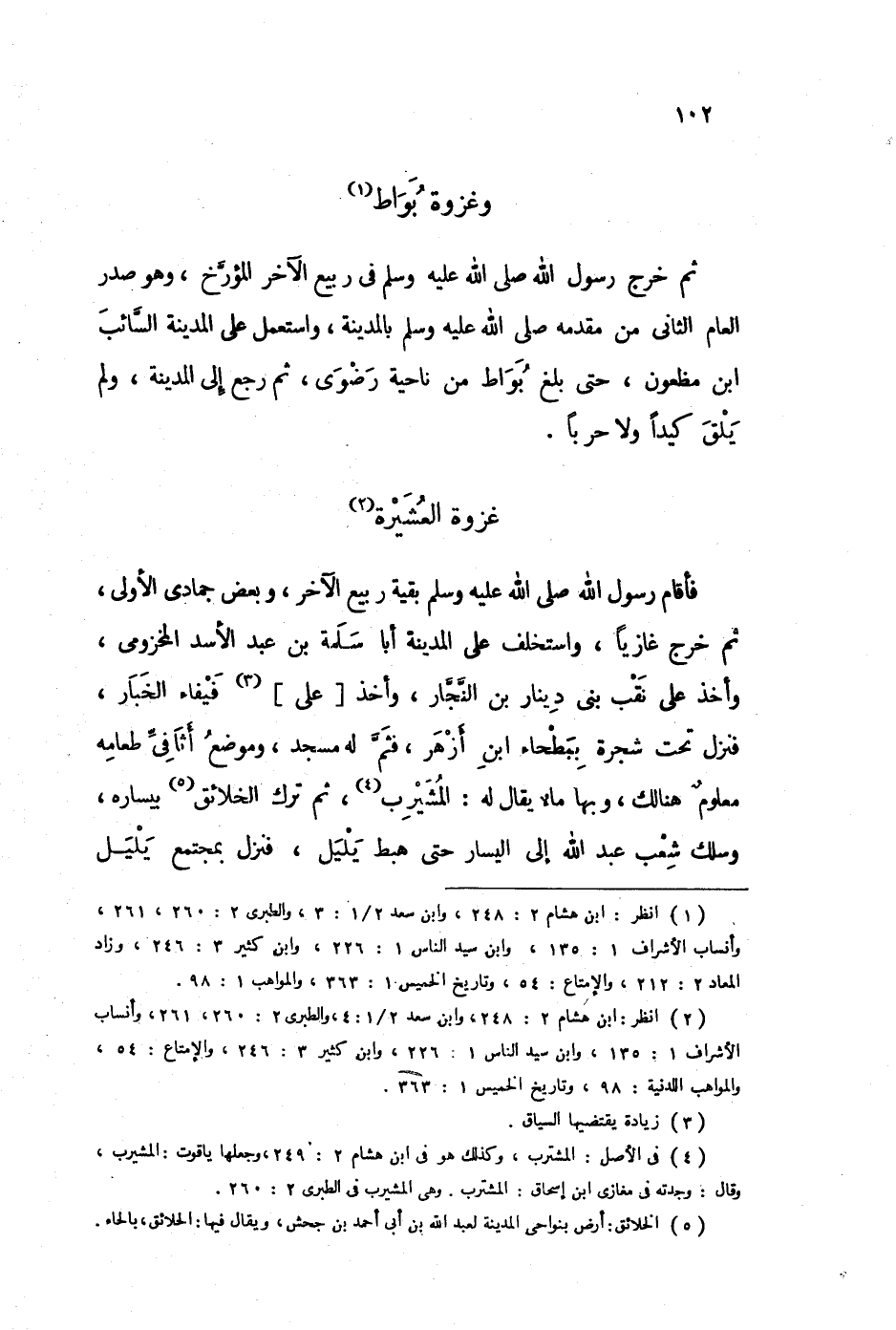 (2) انظر: ابن هشام 2: 248، وابن سعد 2 / 1: 4، والطبري 2: 260، 261، وأنساب الأشراف 1: 135، وابن سيد الناس 1: 226، وابن كثير 3: 246، والإمتاع: 54، والمواهب اللدنية: 98، وتاريخ الخميس 1: 363.