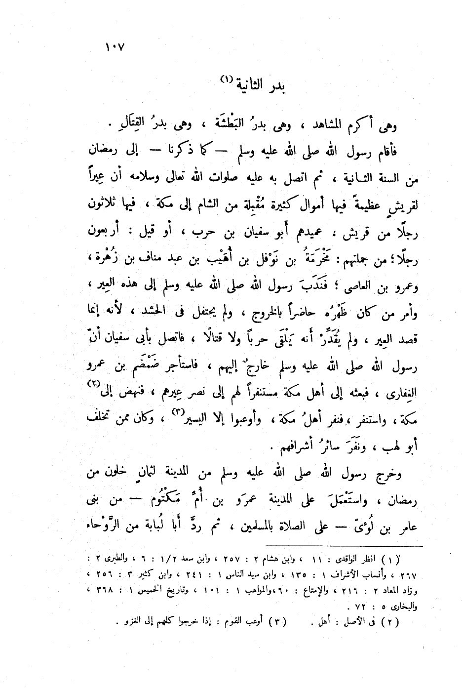 (1) انظر الواقدي: 11، وابن هشام 2: 257، وابن سعد 2 / 1: 6، والطبري 2: 267، وأنساب الأشراف 1: 135، وابن سيد الناس 1: 241، وابن كثير 3: 256، وزاد المعاد 2: 216، والإمتاع: 60 والمواهب 1: 101، وتاريخ الخميس 1: 368، والبخاري 5: 73.