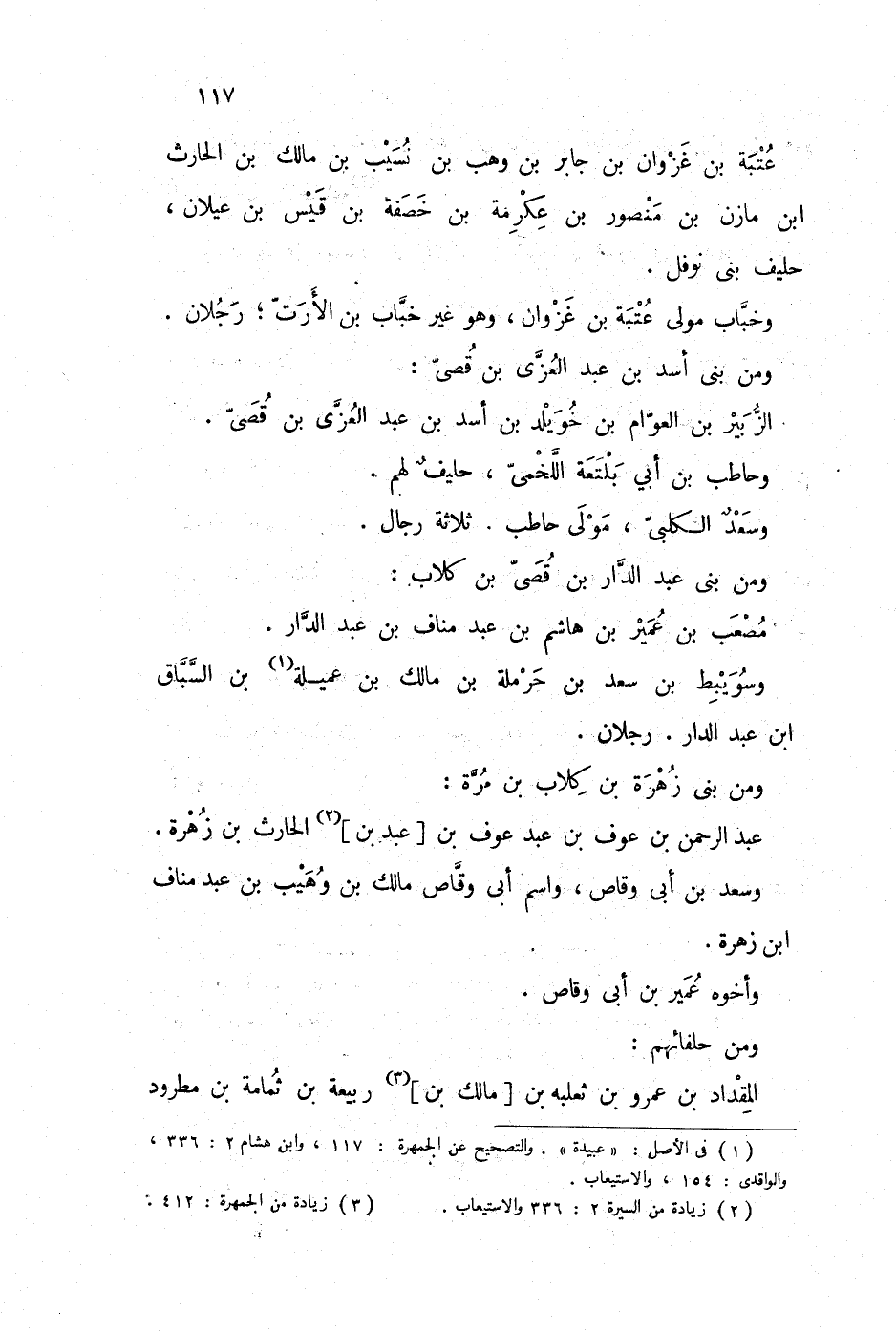 (1) في الأصل: " عبيدة ". والتصحيح عن الجمهرة: 117، وابن هشام 2: 336، والواقدي: 154، والاستيعاب.
