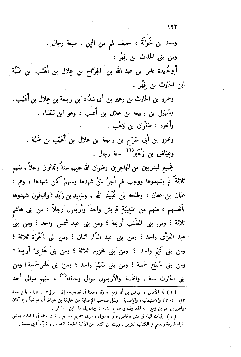 (1) في الأصل: عياض بن أبي زهير؛ وقد رجعنا في تصحيحه إلى السهيل 2: 95، وابن سعد 3 / 1: 304، والاستيعاب، والإصابة. ونقل صاحب الإصابة عن خليفة بن خياط أن عياضاً ربما كان عياض بن غنم بن زهير، المعروف في فتوح الشام، ومال إلى هذا ابن عساكر.