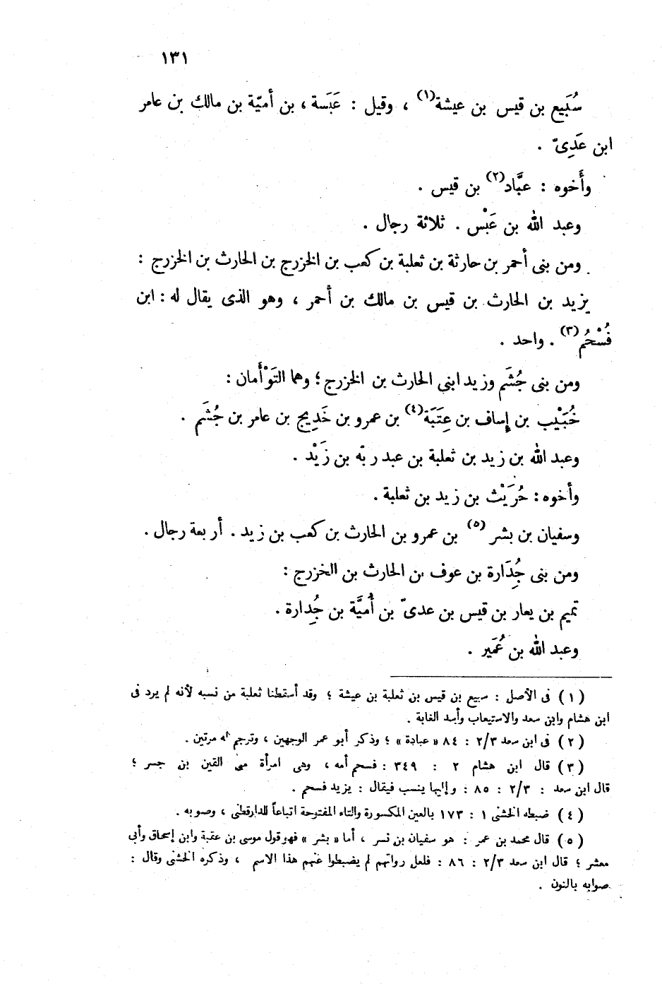 (1) في الأصل: سبيع بن قيس بن ثعلبة بن عيشة؛ وقد ورد أسقطنا ثعلبة من نسبه لأنه لم يرد في ابن هشام وابن سعد الاستيعاب وأسد الغابة.