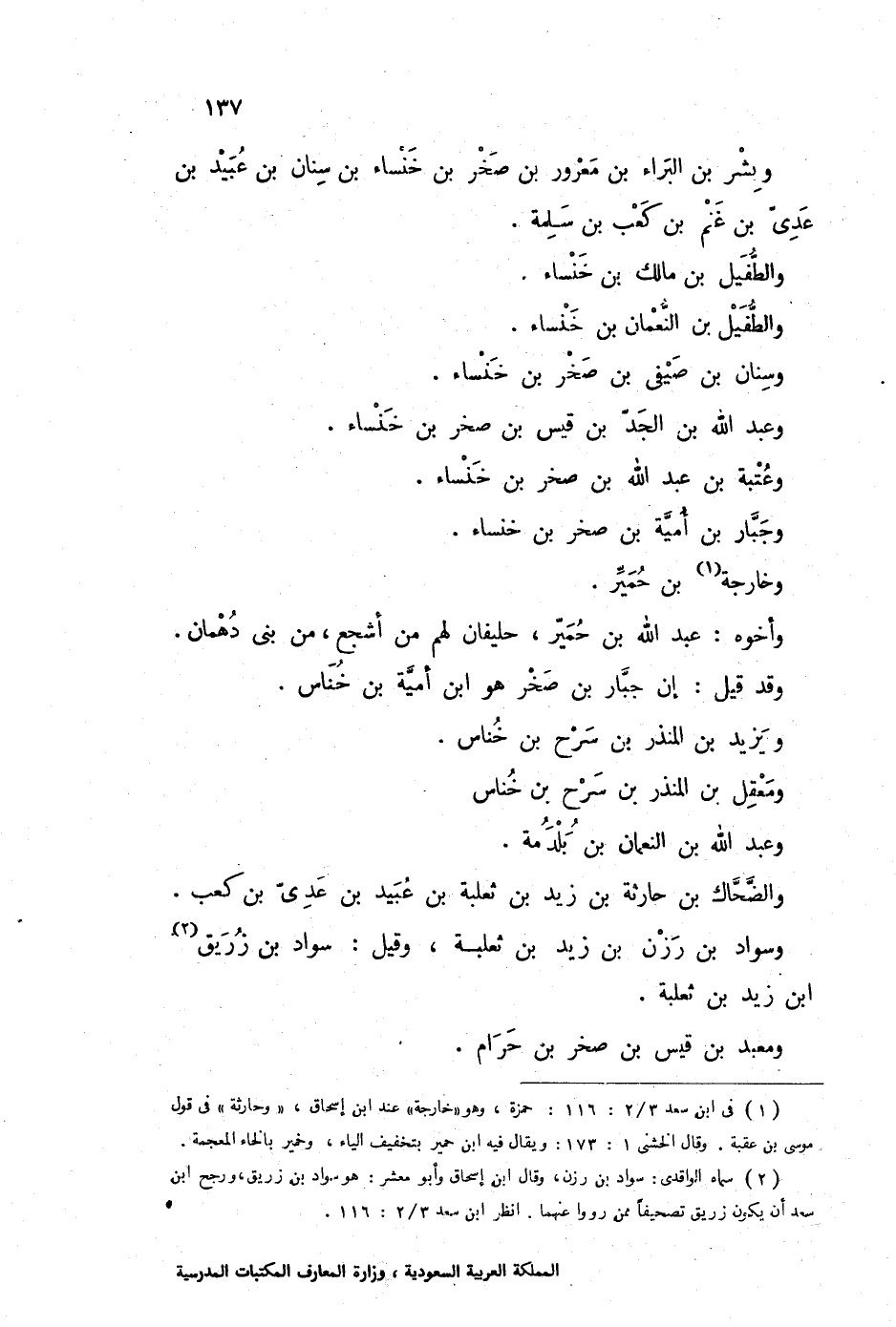 (1) في ابن سعد 3 / 2: 116: حمزة، وهو " خارجة " عند ابن إسحاق، " وحارثة " في قول موسى بن عقبة. وقال الخشني 1: 173: ويقال فيه ابن حمير بتخفيف الياء، وخمير بالخاء المعجمة.