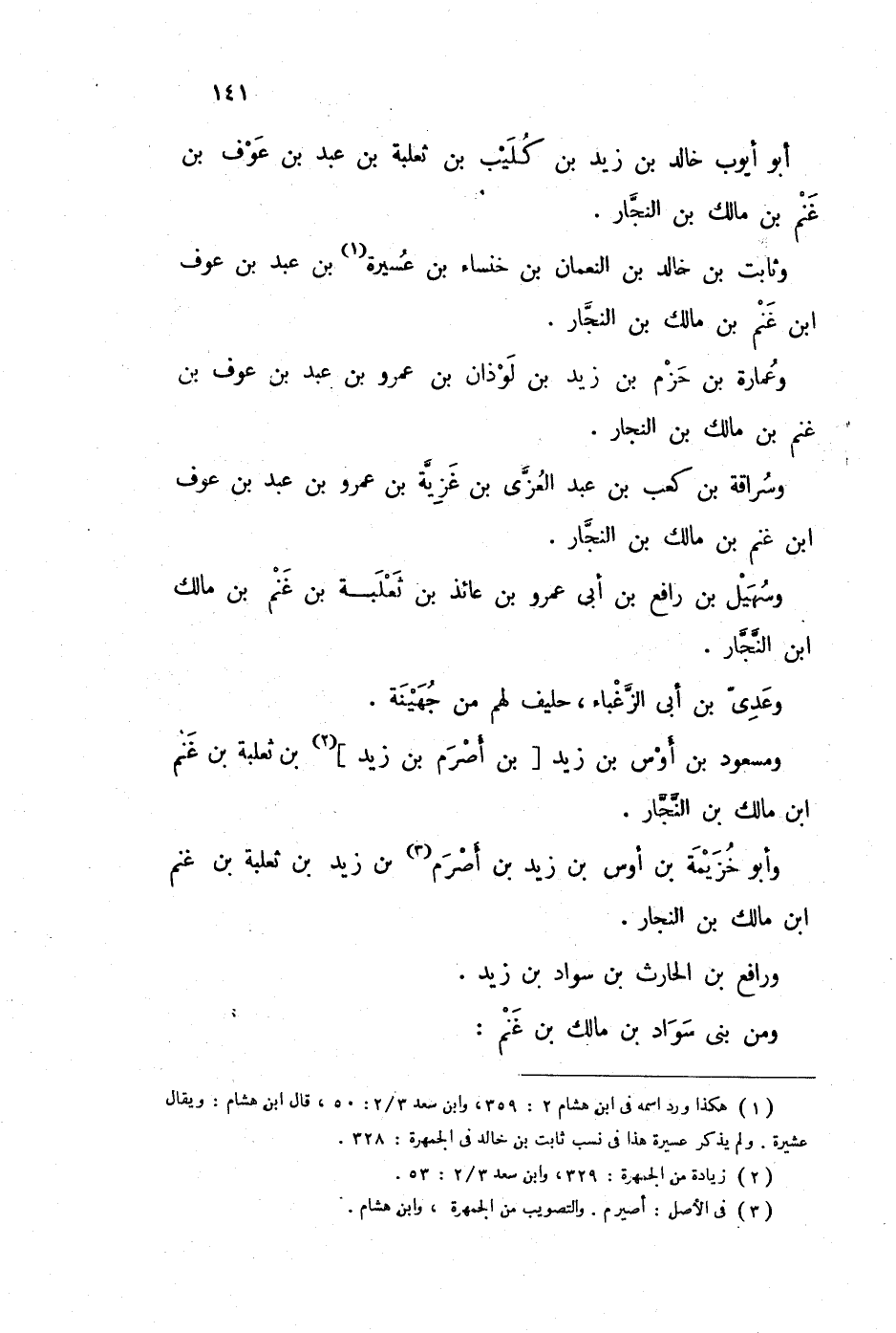 (1) هكذا ورد اسمه في ابن هشام 2: 359، وابن سعد 3 / 2: 50، قال ابن هشام: ويقال عشيرة. ولم يذكر عسيرة هذا في نسب ثابت بن خالد في الجمهرة: 328.