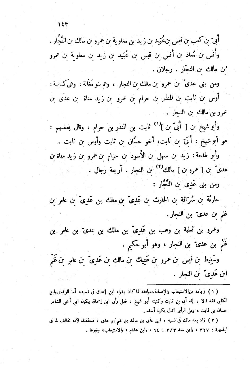 (2) زاد بعد مالك في نسبه: ابن عدي بن مالك بن غنم بن عدي، فحذفناه لأنه مخالف لما في الجمهرة: 327، وابن سعد 3 / 2: 64، وابن هشام، والاستيعاب، وغيرها.