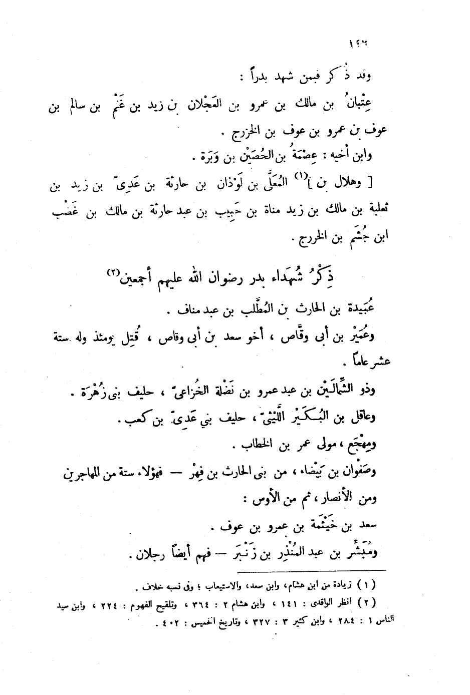 (2) انظر الواقدي: 141، وابن هشام 2: 364، وتلقيح الفهوم: 224، وابن سيد الناس 1: 482، وابن كثير 3: 327، وتاريخ الخميس: 402.