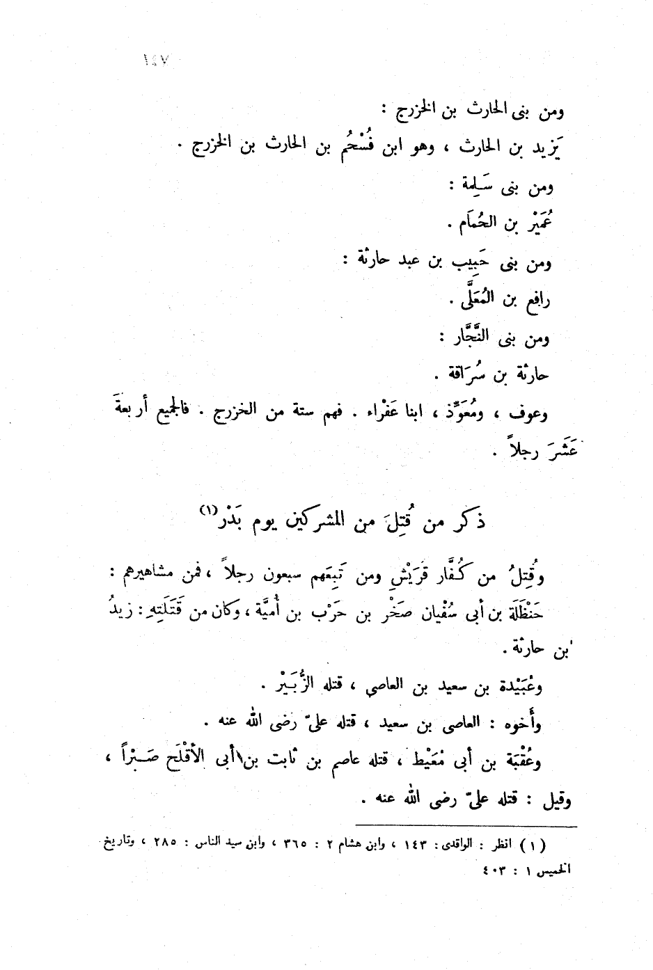 (1) انظر: الواقدي: 143، وابن هشام 2: 365، وابن سيد الناس: 285، وتاريخ الخميس 1: 403.