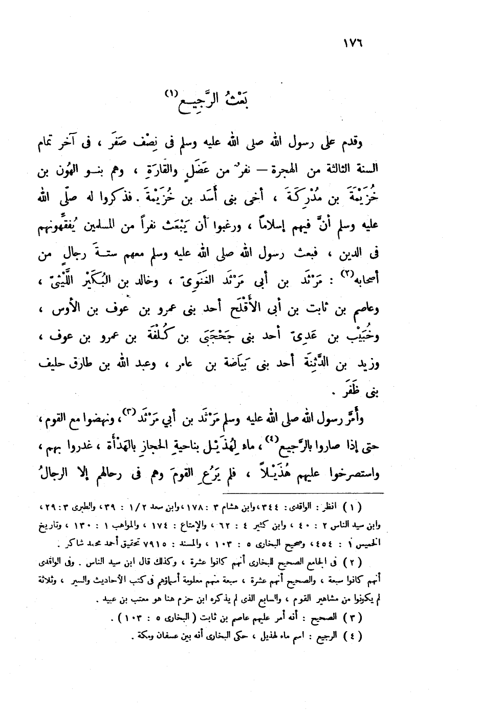 (4) الرجيع: اسم ماء لهذيل، حكى البخاري أنه بين عسفان ومكة.