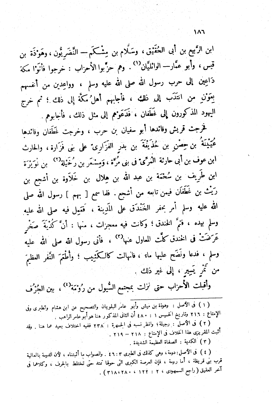 (4) في الأصل: دومة، وهي كذلك في الطبري 3: 46. والصواب ما أثبتناه، لأن الدومة بالعالية قرب بني قريظة، أما رومة، فإن العرصة الكبرى التي حولها تمتد حتى تختلط بالجرف، وكلاهما في آخر العقيق (راجع السمهودي، 2: 122، 280، 318) .