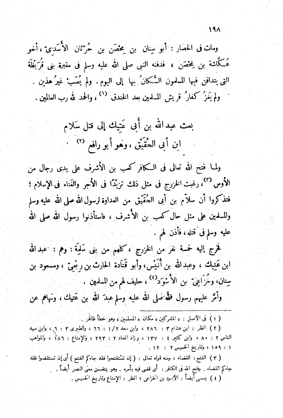 (2) انظر: ابن هشام 3: 286، وبن سعد 2 / 1: 66، والطبري 3: 6، وابن سيد الناس 2: 80، وابن كثير 4: 137، وزاد المعاد 2: 293، والإمتاع: 186، والمواهب 1: 159، وتاريخ الخميس 2: 12.