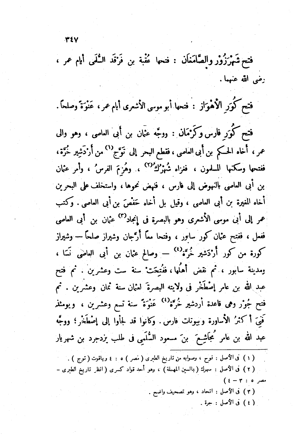 فتح كور الأهواز: فتحها أبو موسى الأشعري أيام عمر، عنوة وصلحاً.