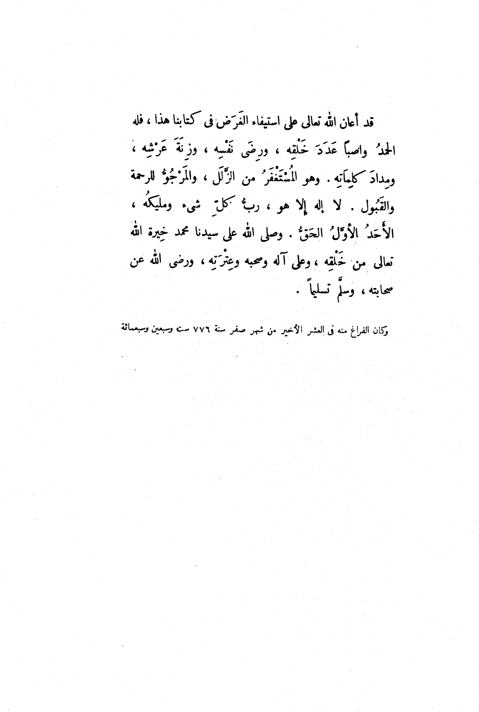 وكان الفراغ منه في العشر الأخير من شهر صفر سنة 776 ست وسبعين وسبعمائة.