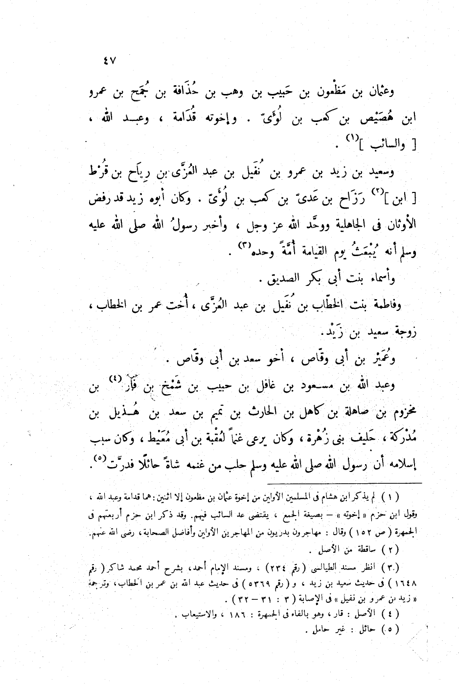 (3) انظر مسند الطيالسي (رقن 234) ، ومسند الإمام أحمد، بشرح أحمد محمد شاكر (رقم 1648) في حديث سعيد بن زيد، و (رقم 5369) في حديث عبد الله بن عمر بن الخطاب، وترجمة " زيد بن عمرو بن نفيل " في الإصابة (3: 31 - 32) .
