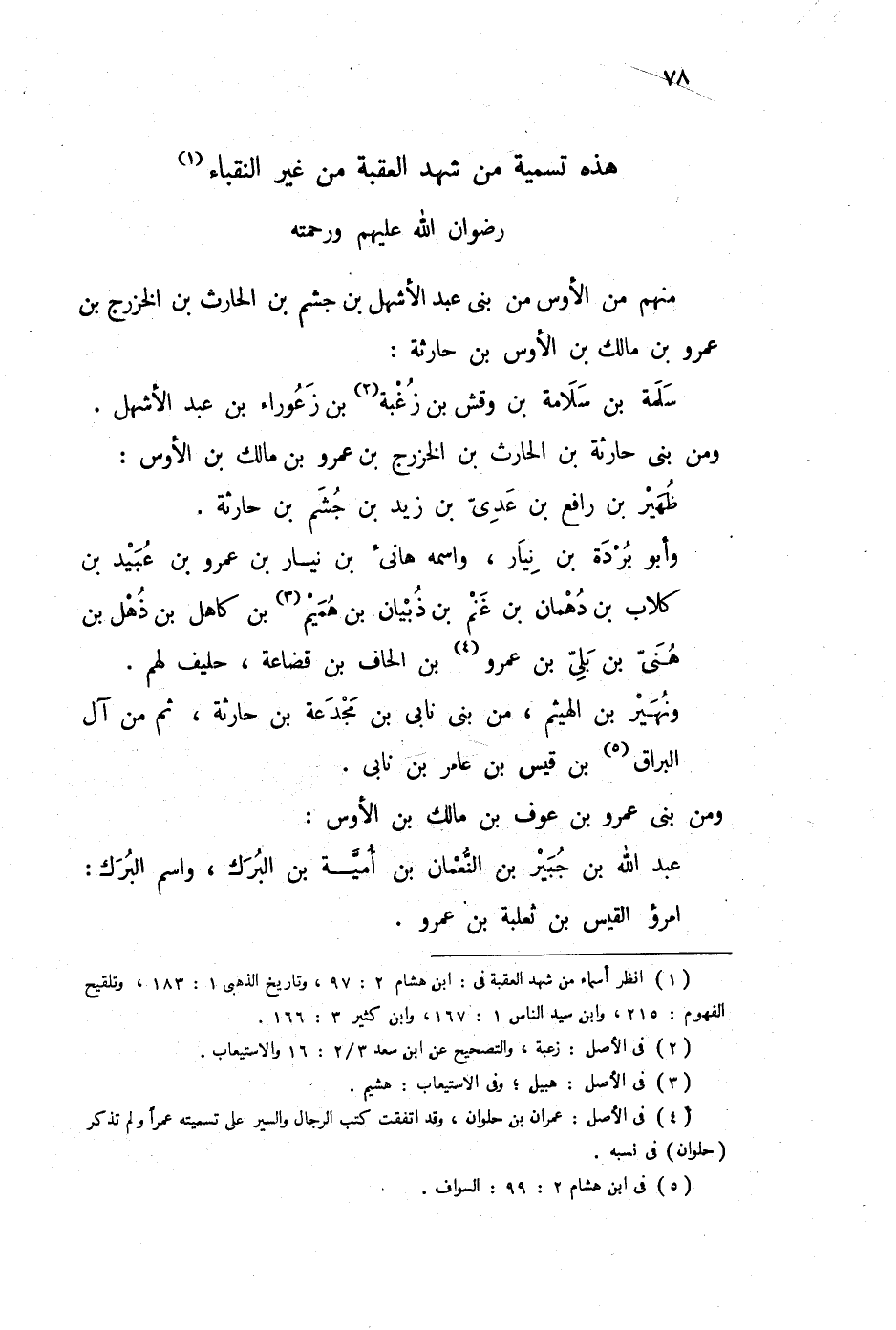 (1) انظر أسماء من شهد العقبة في: ابن هشام 2: 97، وتاريخ الذهبي 1: 183، وتلقيح الفهوم: 215، وابن سيد الناس 1: 167، وابن كثير 3: 166.