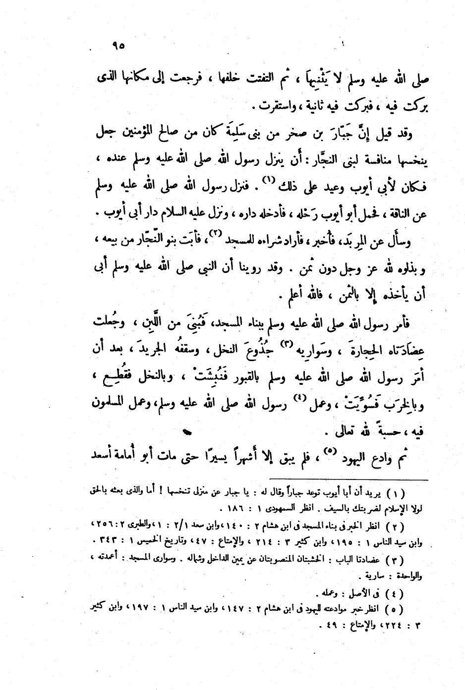 (2) انظر الخبر في بناء المسجد في ابن هشام 2: 140، وابن سعد 1 / 2: 1، والطبري 2: 256، وابن سيد الناس 1: 159، وابن كثير 3: 214، والإمتاع: 47، وتاريخ الخميس 1: 343.