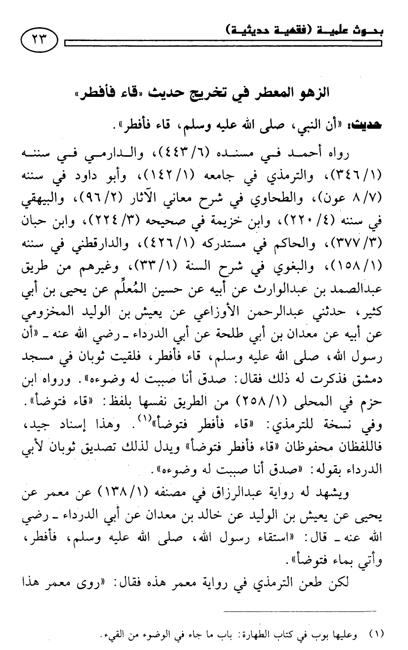 الزهو المعطر في تخريج حديث «قاء فأفطر»