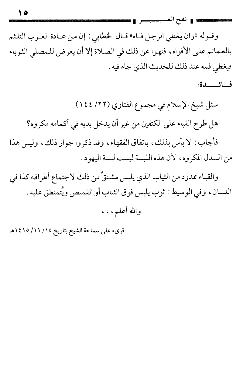 (¬1) قرئ على سماحة الشيخ بتاريخ 15/ 11/1415هـ.