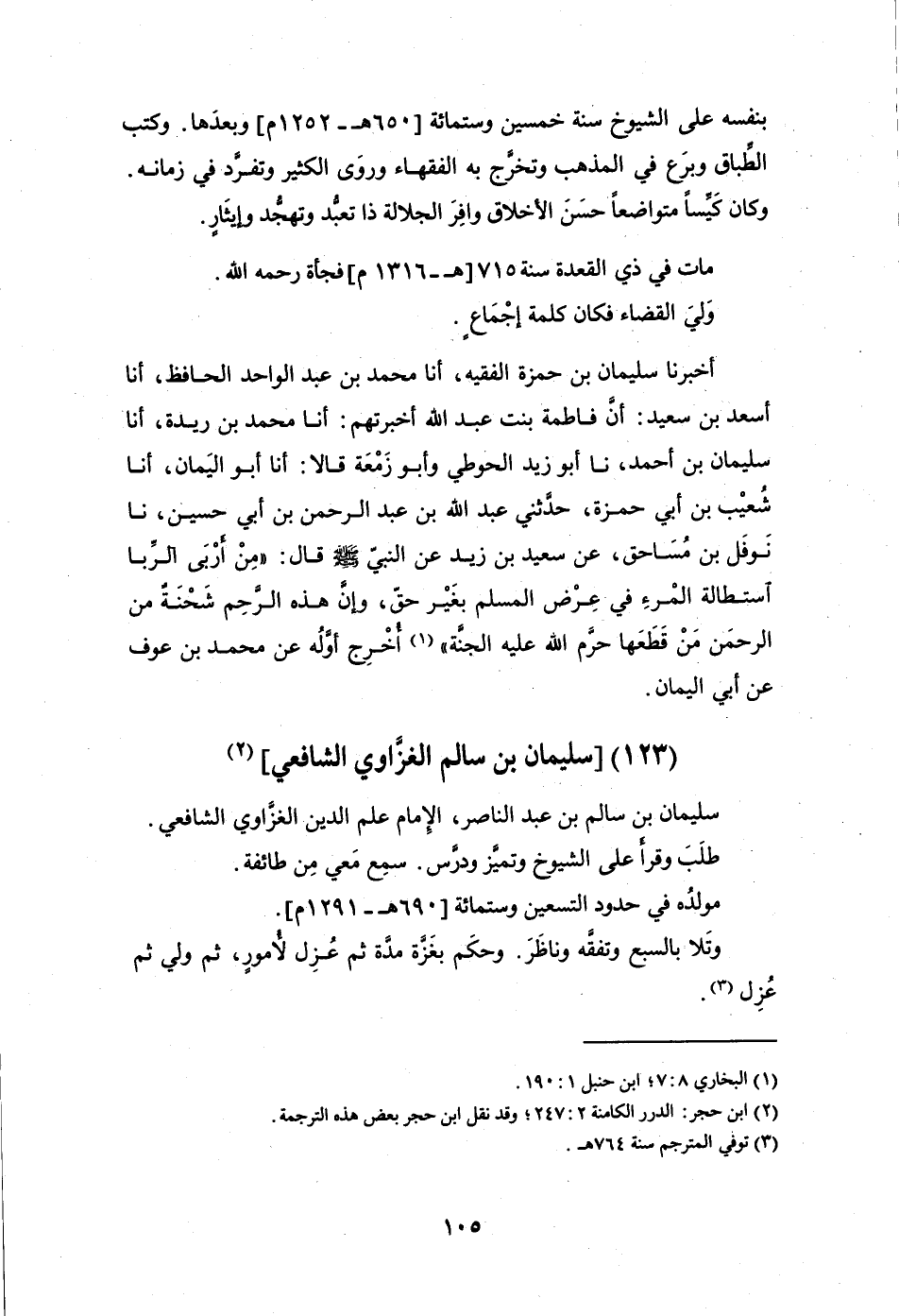سُلَيْمَانُ بْنُ سَالِمِ بْنِ عَبْدِ النَّاصِرِ، الْإِمَامُ عَلَمُ الدِّينِ الْغَزَّاوِيُّ الشَّافِعِيُّ، طَلَبَ وَقَرَأَ عَلَى الشُّيُوخِ وَتَمَيَّزَ وَدَرَسَ سَمِعَ مَعِي مِنْ طَائِفَةٍ مَوْلِدُهُ فِي حُدُودِ التِّسْعِينَ وَسِتِّ مِائَةٍ.