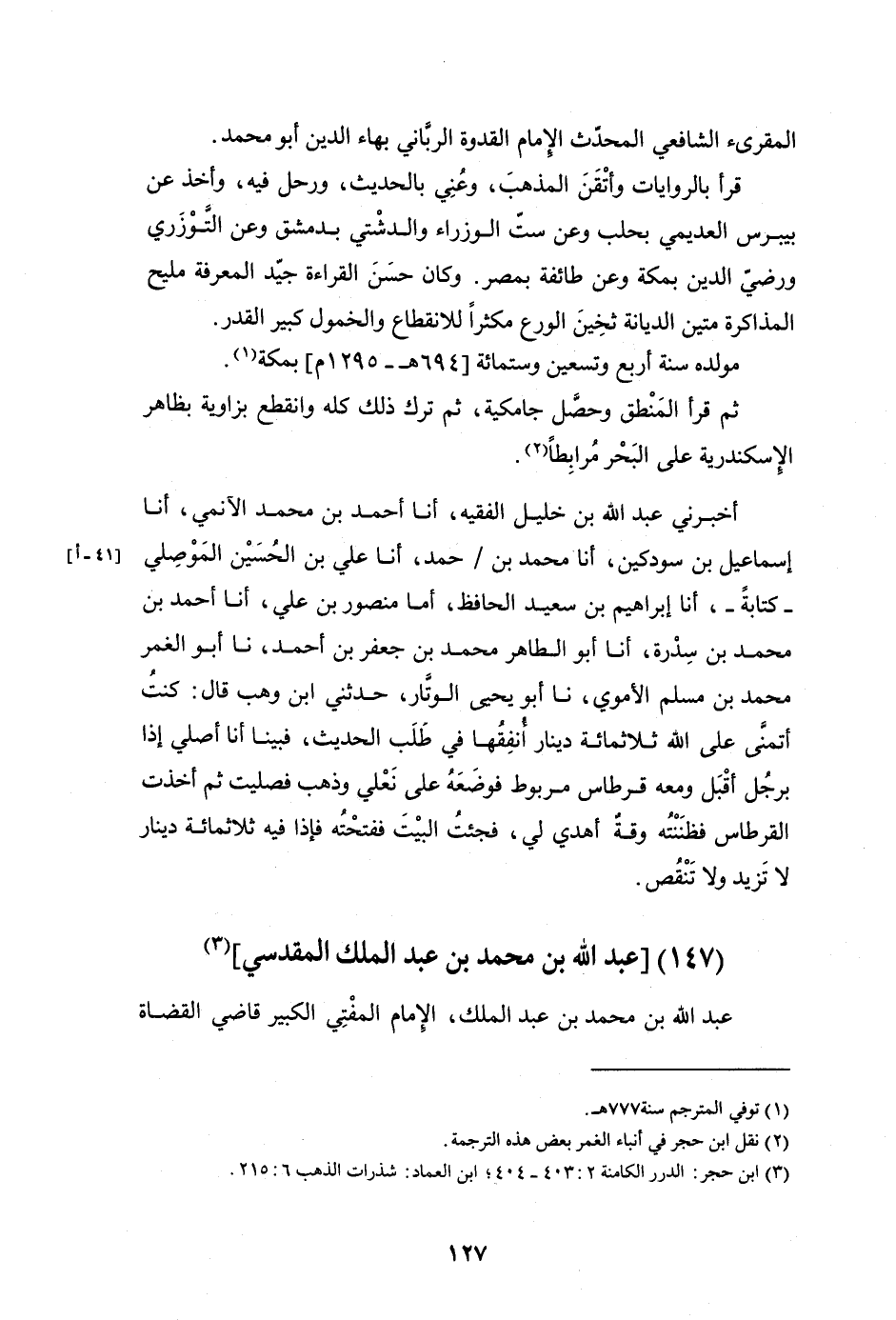 الْمُقْرِئُ الشَّافِعِيُّ الْمُحَدِّثُ الْإِمَامُ الْقُدْوَةُ الرَّبَّانِيُّ بَهَاءُ الدِّينِ أَبُو مُحَمَّدٍ.