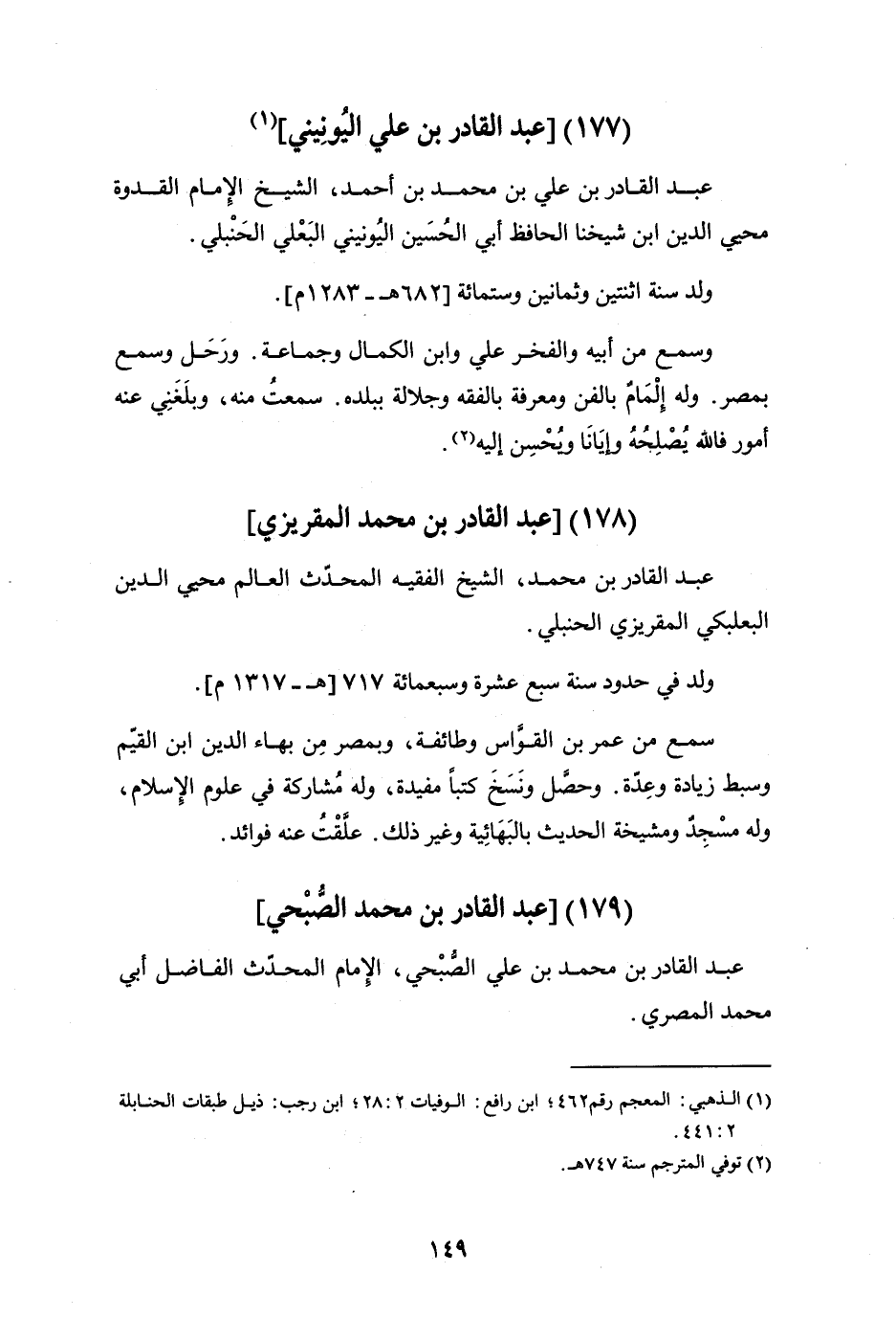 عَبْدُ الْقَادِرِ بْنُ مُحَمَّدٍ، الشَّيْخُ الْفَقِيهُ الْمُحَدِّثُ الْعَالِمُ مُحْيِي الدِّينِ الْبَعْلَبَكِيُّ الْمَقْرِيزِيُّ الْحَنْبَلِيُّ.