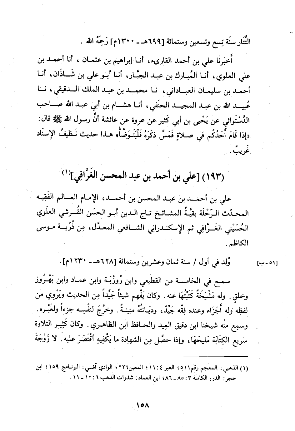 أَخْبَرَنَا عَلِيُّ بْنُ أَحْمَدَ الْقَارِئُ، أَنَا إِبْرَاهِيمُ بْنُ عُثْمَانَ، أَنَا أَحْمَدُ بْنُ عَلِيٍّ الْعَلَوِيُّ، أَنَا الْمُبَارَكُ بْنُ عَبْدِ الْجَبَّارِ، أَنَا أَبُو عَلِيِّ بْنِ شَاذَانَ، أَنَا أَحْمَدُ بْنُ سُلَيْمَانَ الْعَبَادَانِيُّ، نَا مُحَمَّدُ بْنُ عَبْدِ الْمَلِكِ الدَّقِيقِيُّ، نَا عُبَيْدُ اللَّهِ بْنُ عَبْدِ الْمَجِيدِ الْحَنَفِيُّ، أَنَا هِشَامُ بْنُ أَبِي عَبْدِ اللَّهِ، صَاحِبِ الدِّسْتُوَائِيِّ، عَنْ يَحْيَى بْنِ أَبِي كَثِيرٍ، عَنْ عُرْوَةَ، عَنْ عَائِشَةَ، أَنّ رَسُولَ اللَّهِ صَلَّى اللَّهُ عَلَيْهِ وَسَلَّمَ، قَالَ: «إِذَا قَامَ أَحَدُكُمْ فِي صَلَاةٍ فَمَسَّ ذَكَرَهُ فَلْيَتَوَضَّأَ» هَذَا حَدِيثٌ نَظِيفٌ الْإِسْنَادِ غَرِيبٌ
