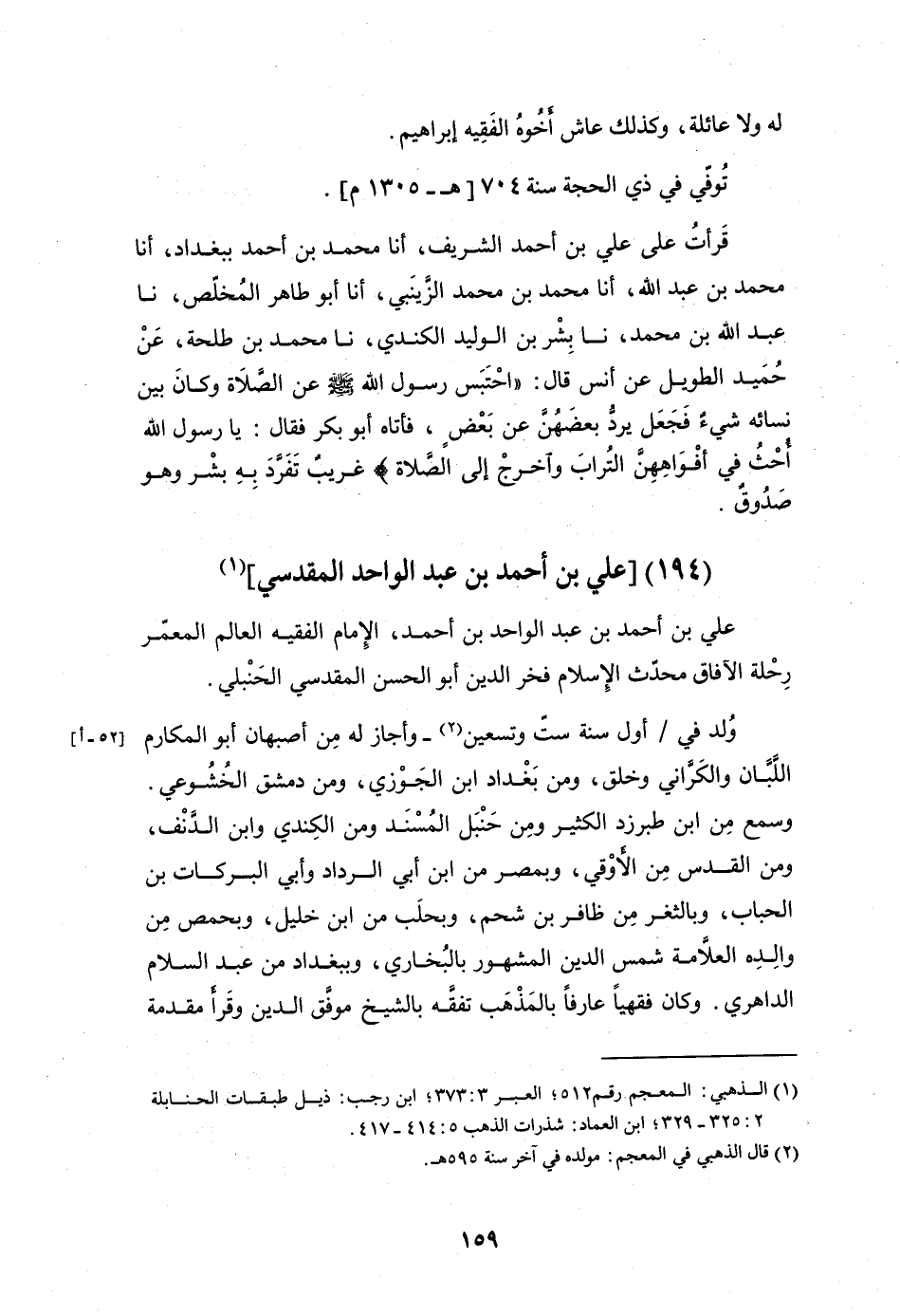 عَلِيُّ بْنُ أَحْمَدَ بْنِ عَبْدِ الْوَاحِدِ بْنِ أَحْمَدَ، الْإِمَامُ الْفَقِيهُ الْعَالِمُ الْمُعَمِّرُ رِحْلَةَ الْآفَاقِ مُحَدِّثُ الْإِسْلَامِ فَخْرُ الدِّينِ أَبُو الْحَسَنِ الْمَقْدِسِيُّ الْحَنْبَلِيُّ.