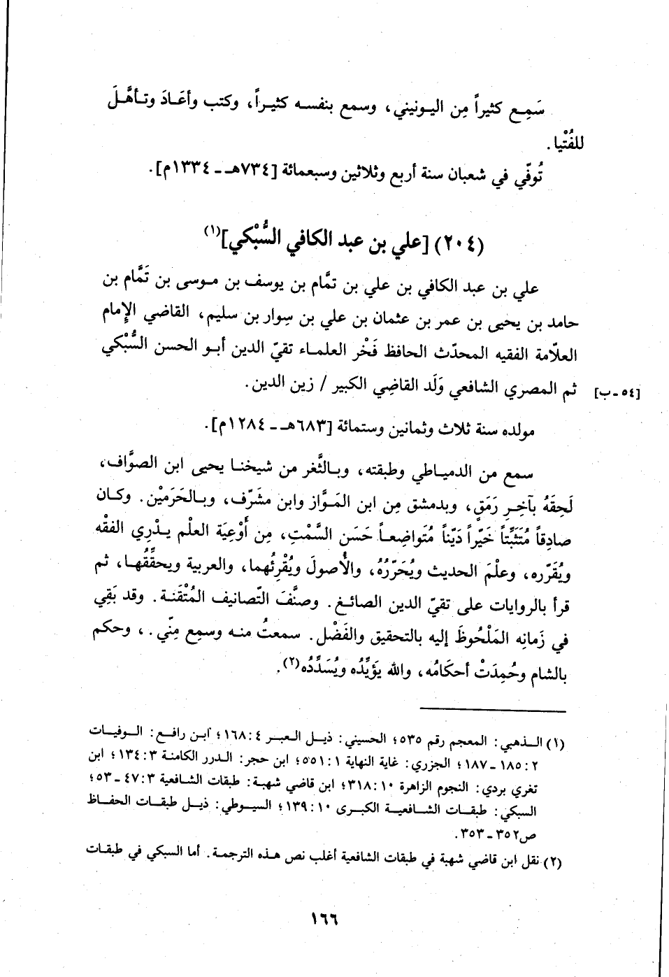 عَلِيُّ بْنُ عَبْدِ الْكَافِي بْنِ عَلِيِّ بْنِ تَمَّامِ بْنِ يُوسُفَ بْنِ مُوسَى بْنِ تَمَّامِ بْنِ حَامِدِ بْنِ يَحْيَى بْنِ عُمَرَ بْنِ عُثْمَانَ بْنِ عَلِيِّ بْنِ سُوَارِ بْنِ سُلَيْمٍ، الْقَاضِي الْإِمَامُ الْعَلَّامَةُ الْفَقِيهُ الْمُحَدِّثُ الْحَافِظُ فَخْرُ الْعُلَمَاءِ تَقِيُّ الدِّينِ أَبُو الْحَسَنِ السُّبْكِيُّ ثُمَّ الْمِصْرِيُّ الشَّافِعِيُّ وَلَدُ الْقَاضِي الْكَبِيرِ زَيْنِ الدِّينِ.