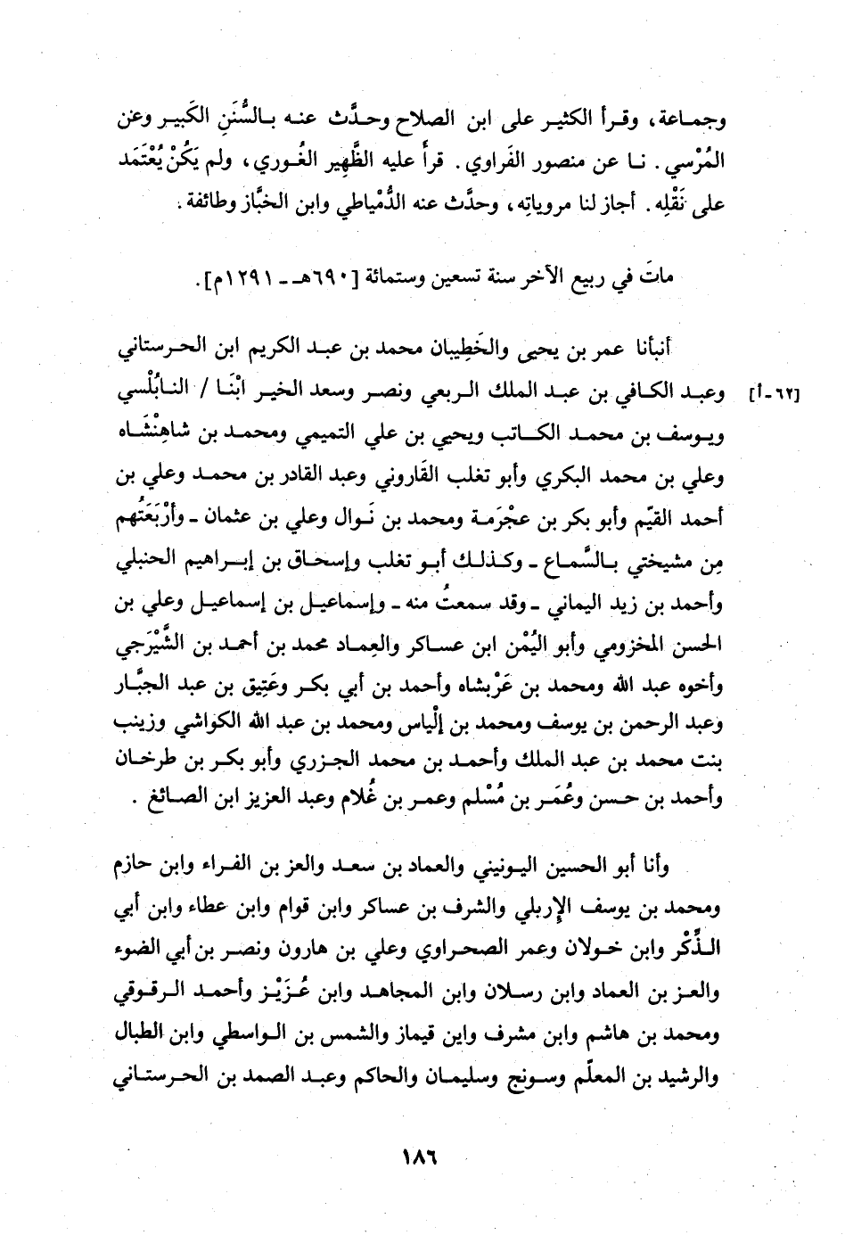 وَأَنَا أَبُو الْحُسَيْنِ اليُّونِينِيُّ، وَالْعِمَادُ بْنُ سَعْدٍ، وَالْعِزُّ بْنُ الْفَرَّاءِ، وَابْنُ حَازِمٍ، وَمُحَمَّدُ بْنُ يُوسُفَ الْأَرْبِلِيُّ، وَالشَّرَفُ بْنُ عَسَاكِرَ، وَابْنُ قَوَّامٍ، وَابْنُ عَطَاءٍ، وَابْنُ أَبِي الذِّكْرِ، وَابْنُ خَوْلَانَ، وَعُمَرُ الصَّحْرَاوِيُّ، وَعَلِيُّ بْنُ هَارُونَ، وَنَصْرُ بْنُ أَبِي الضَّوْءِ، وَالْعِزُّ بْنُ الْعِمَادِ، وَابْنُ رَسْلَانَ، وَابْنُ الْمُجَاهِدِ، وَابْنُ عَزِيزٍ، وَأَحْمَدُ الرَّقُّوقِيُّ، وَمُحَمَّدُ بْنُ هَاشِمٍ، وَابْنُ مُحْسِنٍ، وَابْنُ قَايِمَازَ , وَالشَّمْسُ بْنُ الْوَاسِطِيُّ، وَابْنُ الطَّبَّالِ، وَالرَّشِيدُ بْنُ الْمُعَلِّمِ، وَسَوْنَجُ، وَسُلَيْمَانُ، وَالْحَاكِمُ، وَعَبْدُ الصَّمَدِ بْنُ الْحَرَسْتَانِيُّ،