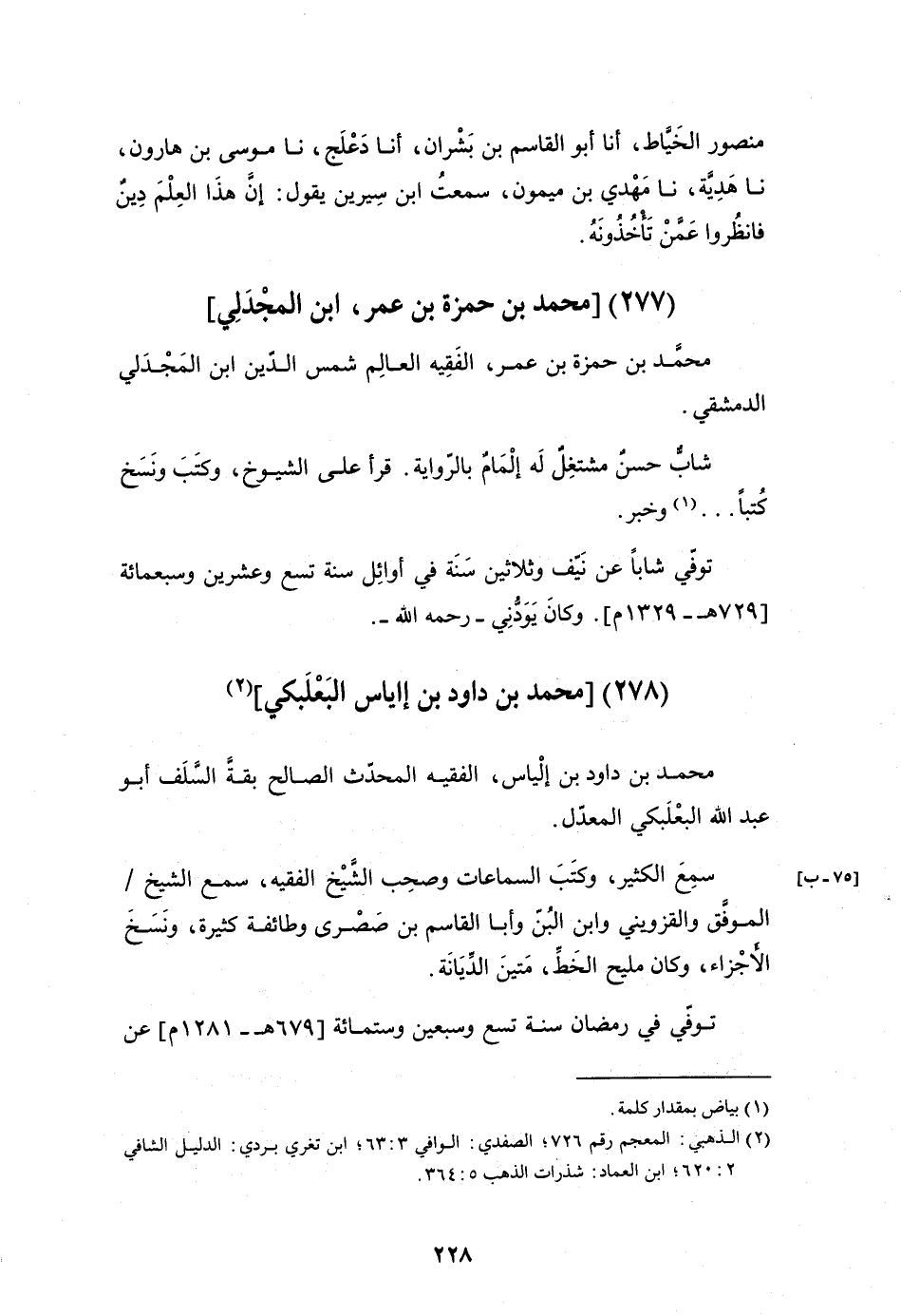 مَنْصُورٍ الْخَيَّاطُ، أَنَا أَبُو الْقَاسِمِ بْنِ بِشْرَانِ، أَنَا دَعْلَجٌ، نَا مُوسَى بْنِ هَارُونَ، نَا هَدِيَّةُ، نَا مَهْدِيُّ بْنُ مَيْمُونٍ، سَمِعْتُ ابْنَ سِيرِينَ، يَقُولُ: «إِنَّ هَذَا الْعِلْمَ دِينٌ فَانْظُرُوا عَمَّنْ تَأْخُذُونَهُ»