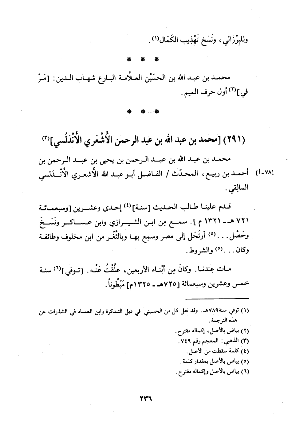 وَلِلْبَرَزَالِيِّ، وَنَسَخَ تَهْذِيبَ الْكَمَالِ.