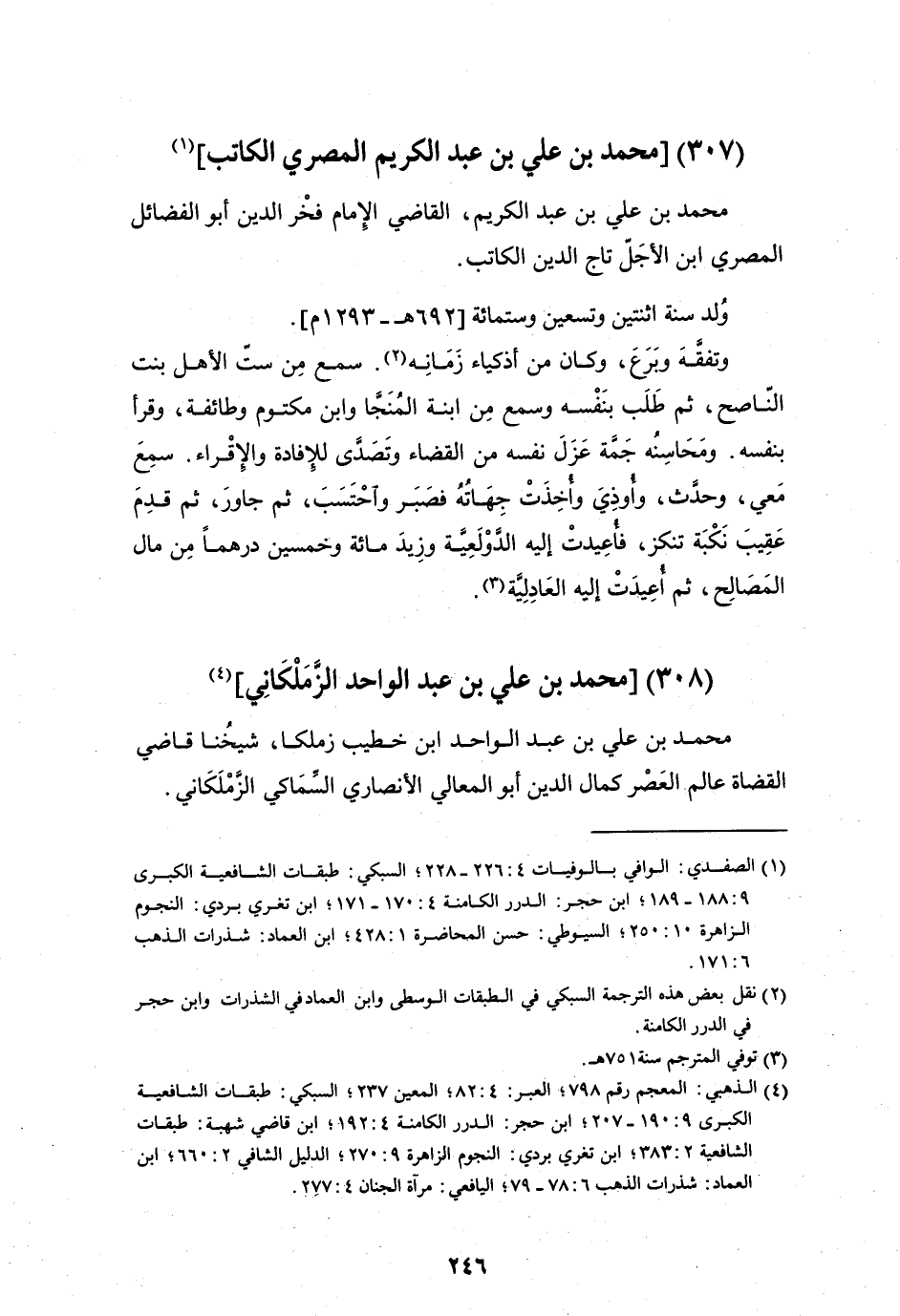 مُحَمَّدُ بْنُ عَلِيِّ بْنِ عَبْدِ الْوَاحِدِ ابْنِ خَطِيبِ زَمَلْكَا، شَيْخُنَا قَاضِي الْقُضَاةِ عَالِمُ الْعَصْرِ كَمَالُ الدِّينِ أَبُو الْمَعَالِي الأَنْصَارِيُّ السَّمَّاكِيُّ الزَّمَلْكَانِيُّ.
