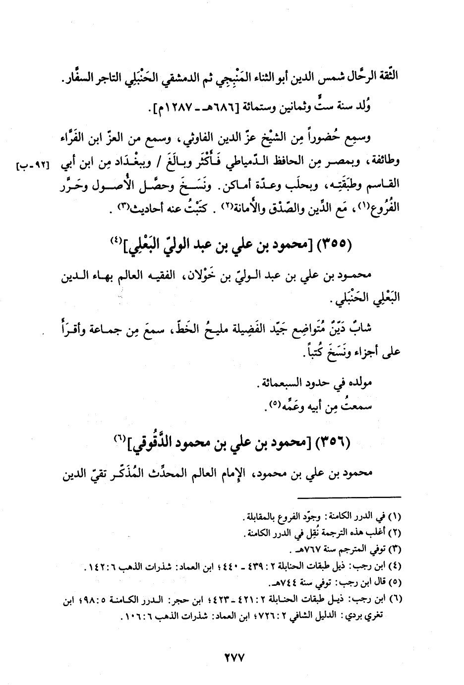 الثِّقَةُ الرَّحَّالُ شَمْسُ الدِّينِ أَبُو الثَّنَاءِ الْمَنْبَجِيُّ ثُمَّ الدِّمَشْقِيُّ الْحَنْبَلِيُّ التَّاجِرُ السَّفَّارُ.