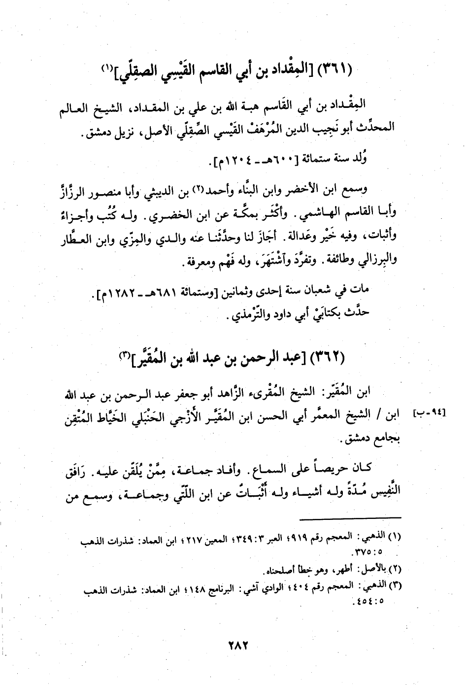 الْمِقْدَادُ بْنُ أَبِي الْقَاسِمِ هِبَةُ اللَّهِ بْنُ عَلِيِّ بْنِ الْمِقْدَادِ، الشَّيْخُ الْعَالِمُ الْمُحَدِّثُ أَبُو نَجِيبِ الدِّينِ الْمُرْهَفُ الْقَيْسِيُّ الصِّقِلِّيُّ الأَصْلُ، نَزِيلُ دِمَشْقَ.