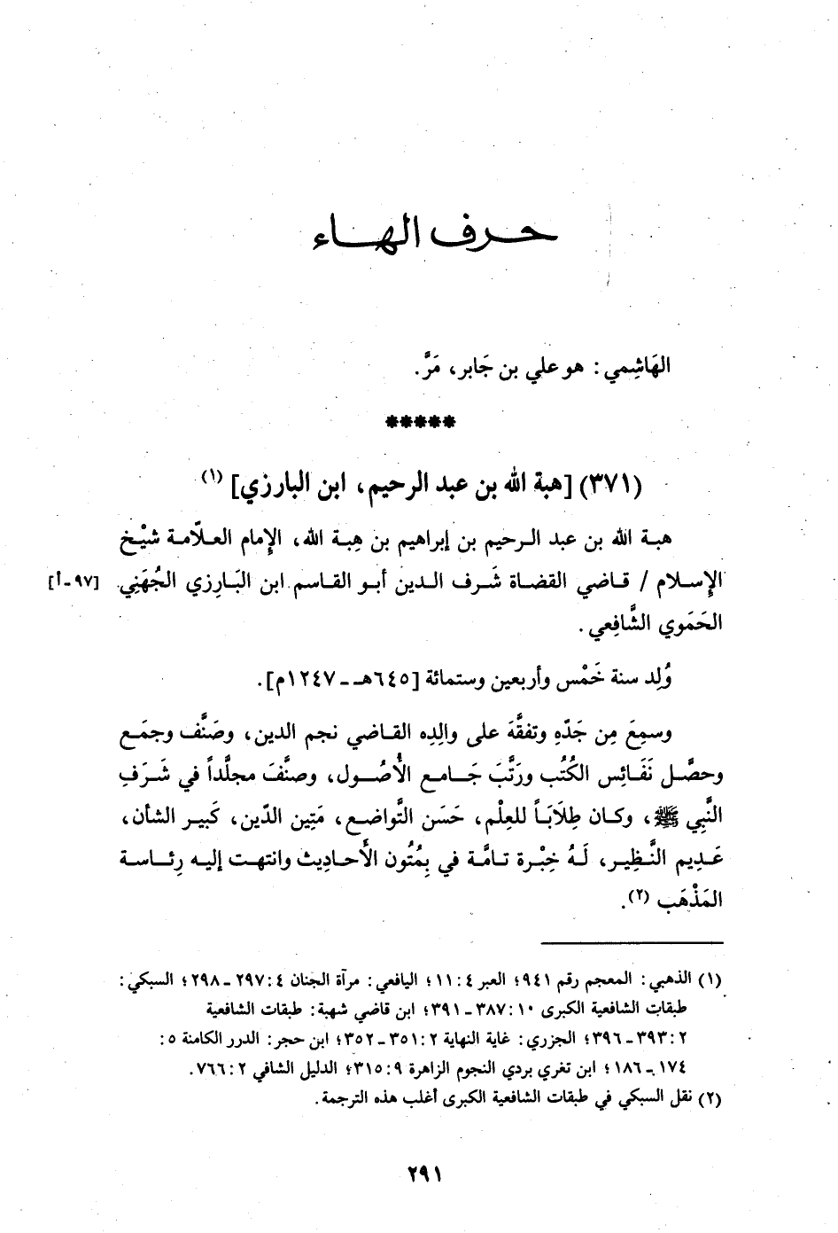هِبَةُ اللَّهِ بْنُ عَبْدِ الرَّحِيمِ بْنِ إِبْرَاهِيمَ بْنِ هِبَةِ اللَّهِ، الإِمَامُ الْعَلامَةُ شَيْخُ الإِسْلامِ قَاضِي الْقُضَاةِ شَرَفُ الدِّينِ أَبُو الْقَاسِمِ ابْنُ الْبَارِزِيُّ الْجُهَنِيُّ الْحَمَوِيُّ الشَّافِعِيُّ.