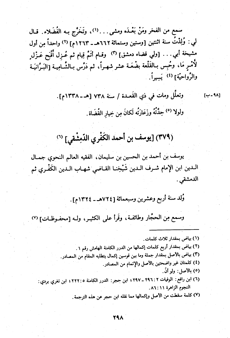 يُوسُفُ بْنُ أَحْمَدَ بْنِ الْحُسَيْنِ بْنِ سُلَيْمَانَ، الْفَقِيهُ الْعَالِمُ النَّحْوِيُّ جَمَالُ الدِّينِ ابْنُ الإِمَامِ شَرَفِ الدِّينِ شَيْخِنَا الْقَاضِي شِهَابِ الدِّينِ الْكَفْرِيُّ ثُمَّ الدِّمَشْقِيُّ.